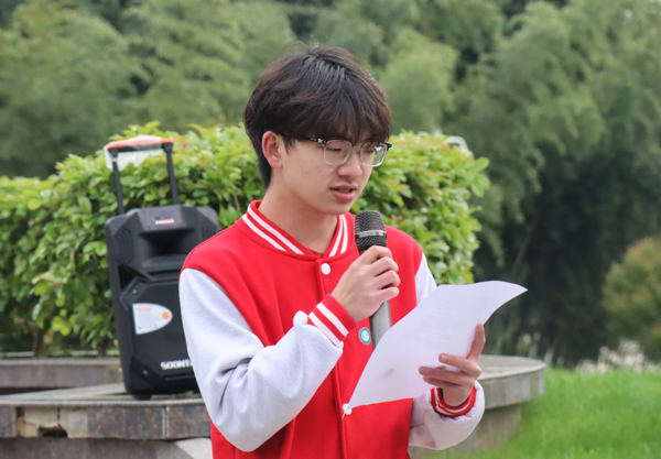 学生代表发言 杨佳伟摄
