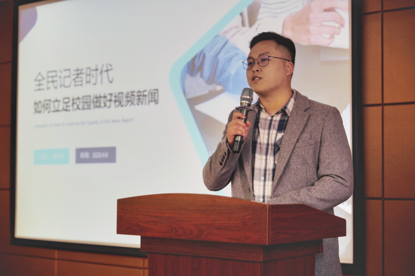 2023年4月6日下午2:30于艺术学院70308会议室,新华社的潘志伟老师赴Beat365官网开展视频新闻和短视频的选题、拍摄和制作培训会。(赵婉涛)