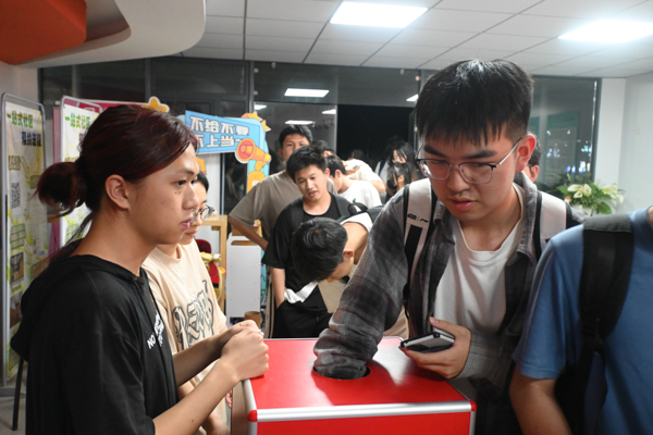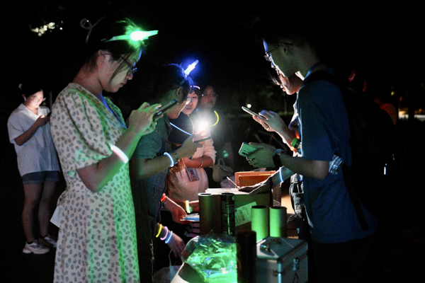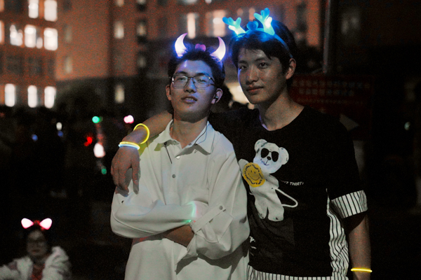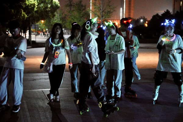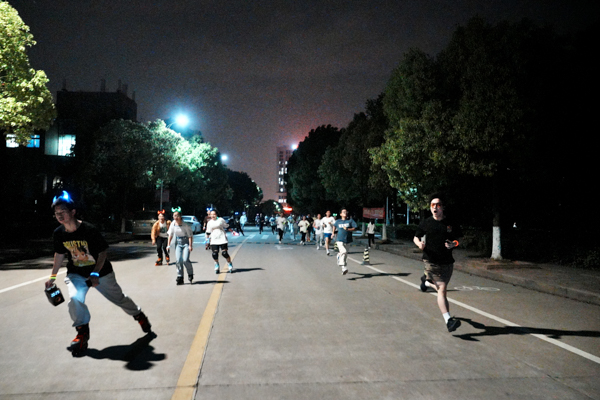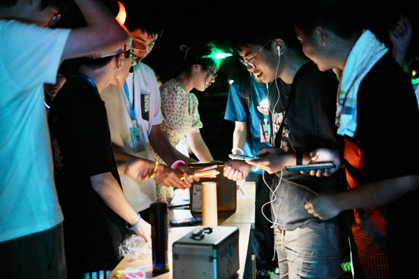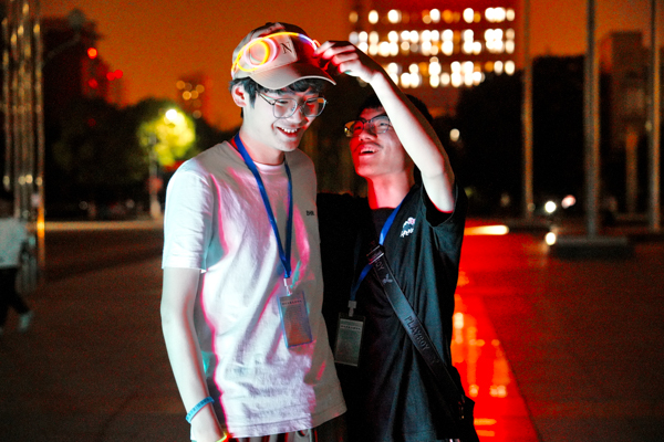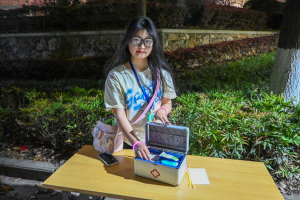 荧光夜跑工作人员活动前准备 赵婉涛摄