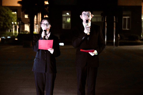 荧光夜跑主持人开场讲话 赵婉涛摄