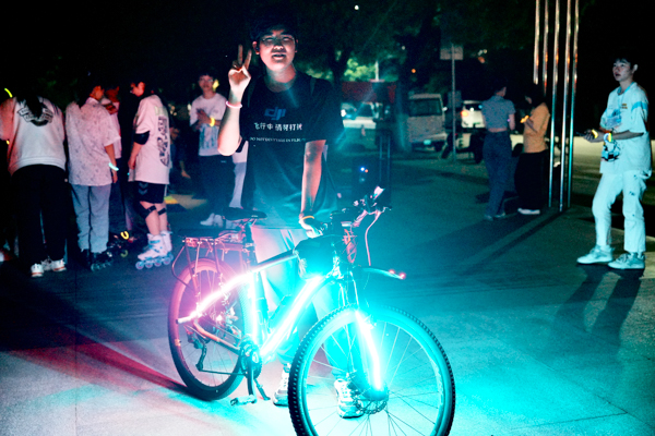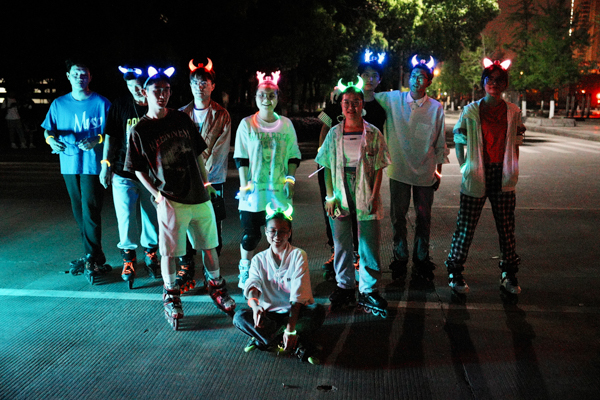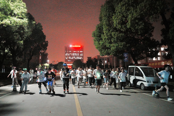 荧光夜跑活动参与人员合影 赵婉涛摄