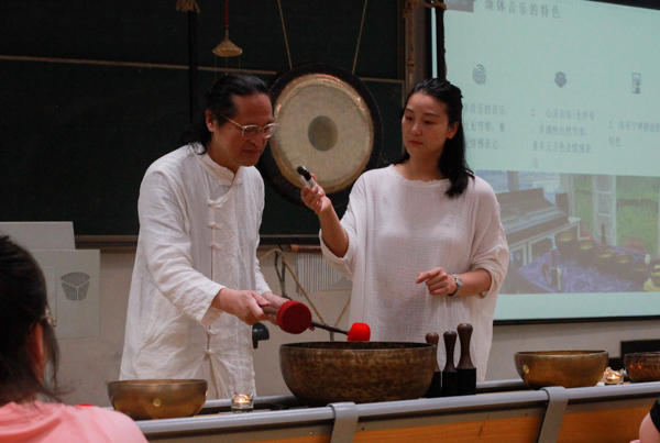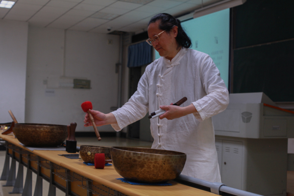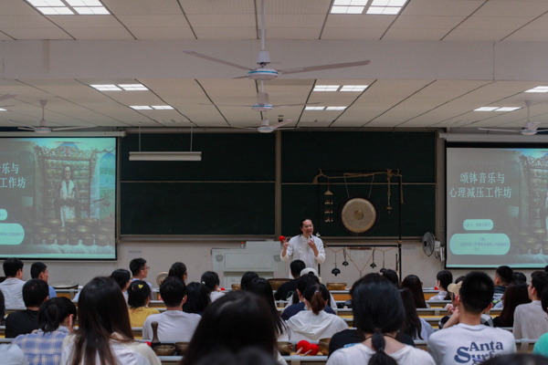 4月18日,由Beat365中文官方网站音乐与心理健康研究中心承办的“颂钵音乐 心理减压工作坊”活动在恒大楼举办。香港知名音乐人,作曲家,音乐疗法专家黄耀光作为主讲人,向同学们介绍了钵的作用,并且进行了现场演示,给现场同学们带来了一场听觉盛宴,同时让大家的身心得到了放松。(刘靖瑶)