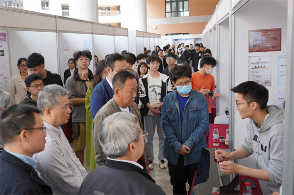 从高端技术到基层调研,77件作品在“沁湖杯”学生科创作品展活动现场分成哲学与社会科学、机械与控制、信息技术与数理、医学与生命科学、能源化工5个组别,按照省赛现场展示模式进行布置。参赛团队通过海报宣传、实物展示、现场讲解对项目在现场为师生进行生动直观展示。