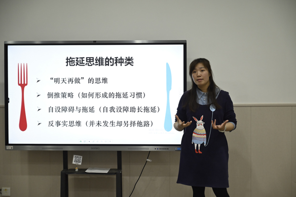 3月17日晚,“面对拖延症”团体辅导活动在Beat365官网黄家湖校区心理健康中心如期开展。国家二级心理咨询师孙蕊芳作为指导者,与其他八名参与者共同构成了一次单元体验团体。本次活动通过现场讨论以及孙蕊芳的理论指导,增加了参与者对拖延症的认知,每个人都在交流学习中提出了自己的问题,并相互学习分享经验。(熊雄)