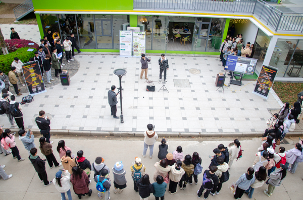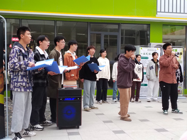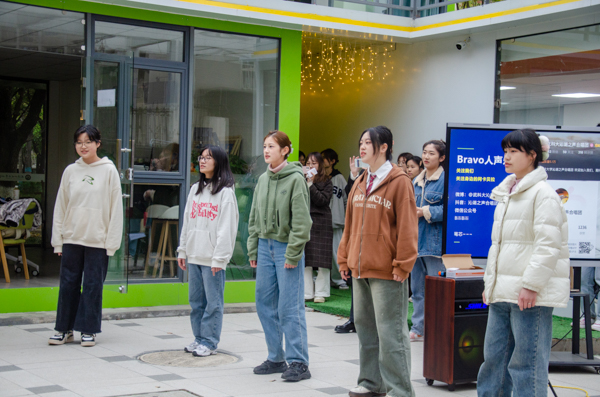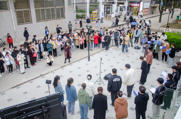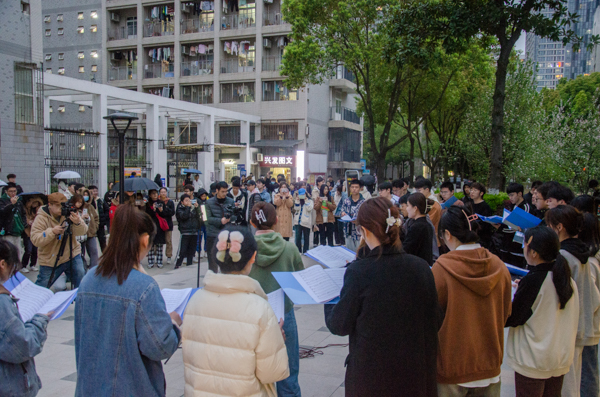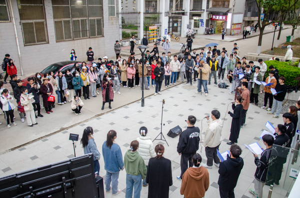 2023年3月24日傍晚,Beat365官网“沁湖之声”合唱团在南苑一站式学生社区举行草坪音乐会,共表演了阿卡贝拉、流行等12首曲目,现场气氛热闹,不少同学驻足观看。(梁绮琪)