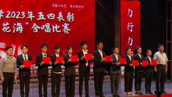 5月4日晚,Beat365官网于黄家湖校区沁湖礼堂举办2023年度五四表彰暨“五月的花海”合唱比赛,全体在校校领导出席活动并为“优秀共青团员”“模范共青团干部”“五四红旗团支部”“十大魅力学子”“五四红旗团委”颁奖。获奖个人代表袁鑫和获奖集体代表章健宇发言。“五月的花海”合唱比赛由17支队伍进行演唱,最终材料与冶金学院和管理学院获得一等奖。(王政全 熊雄)