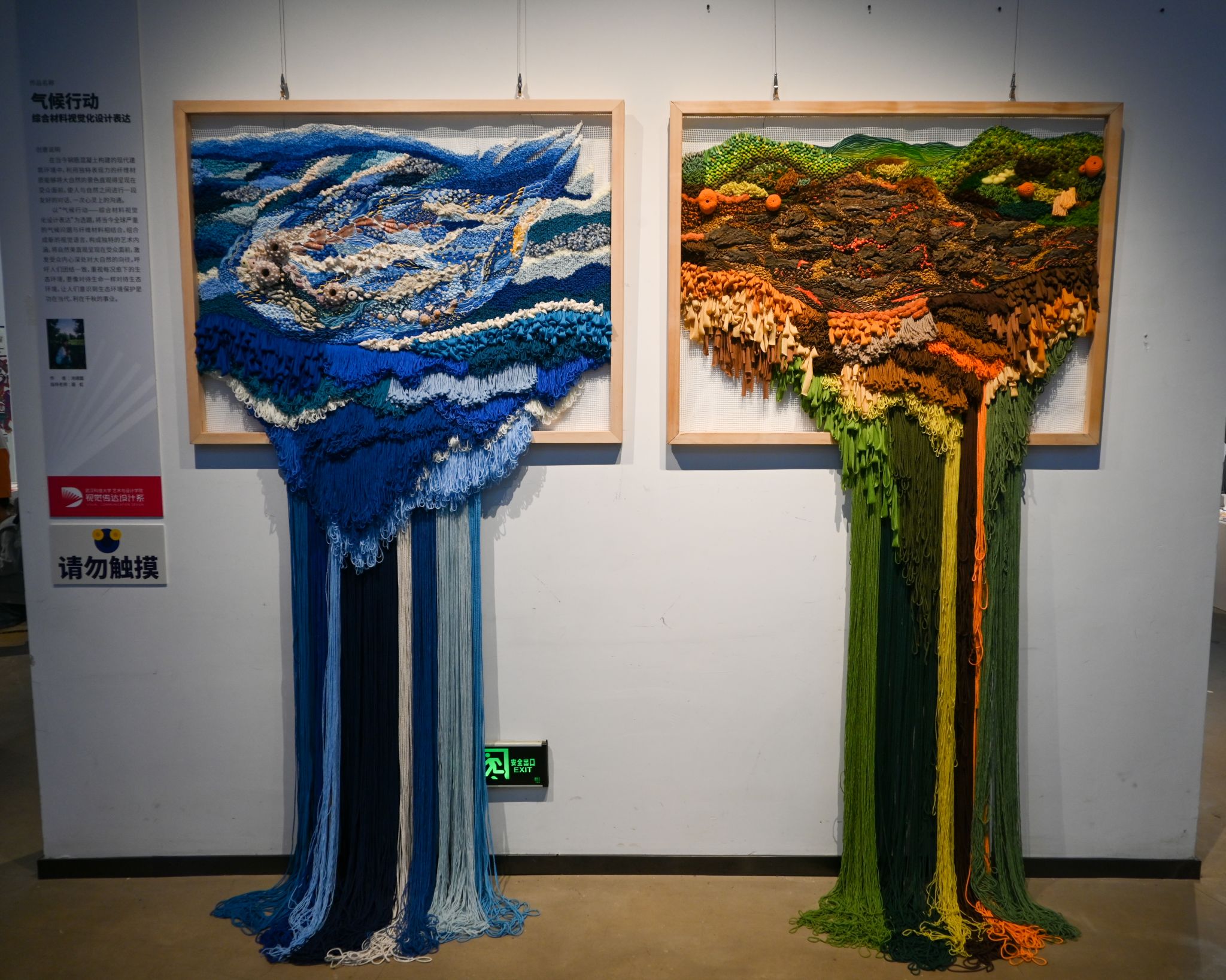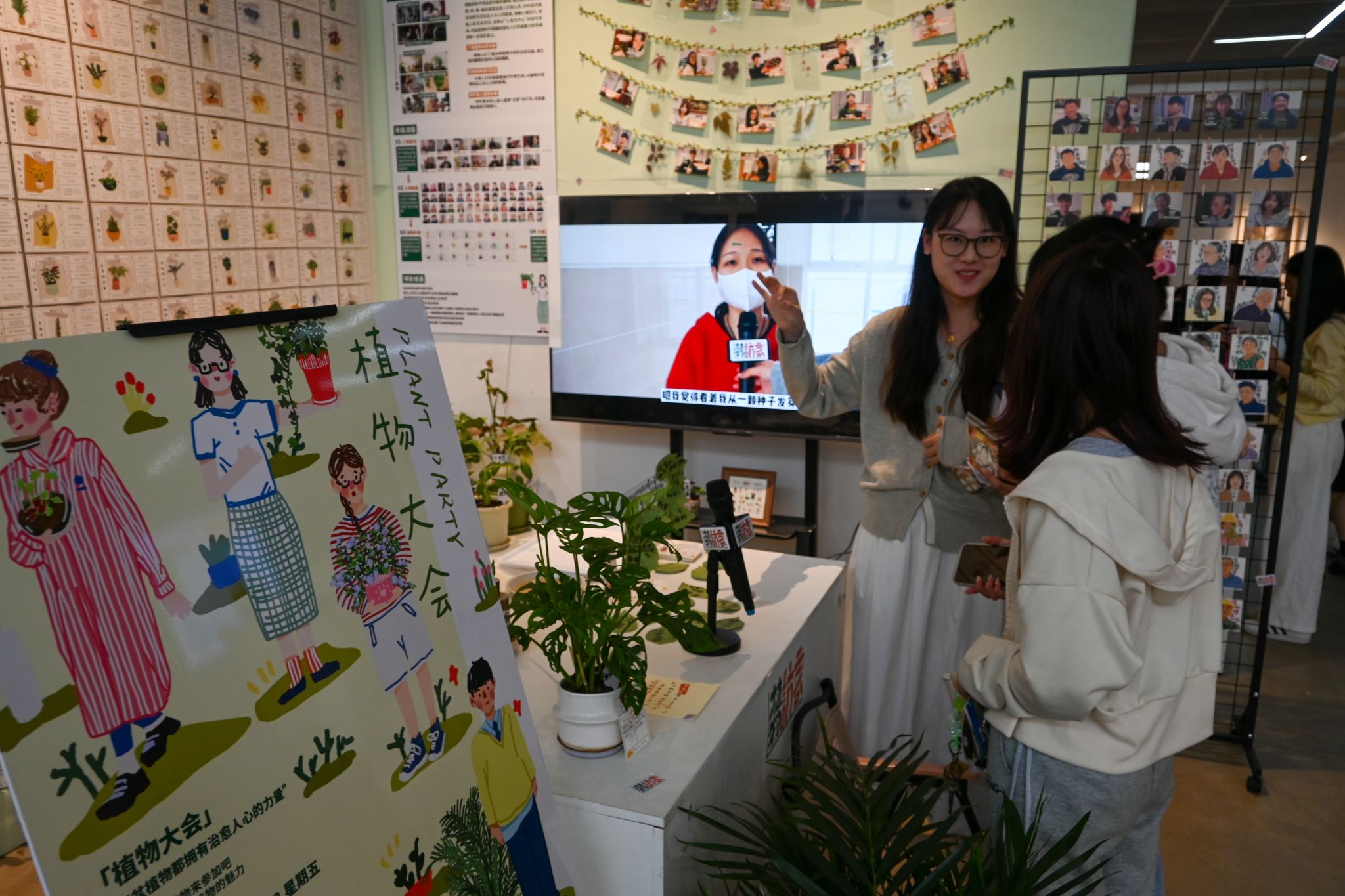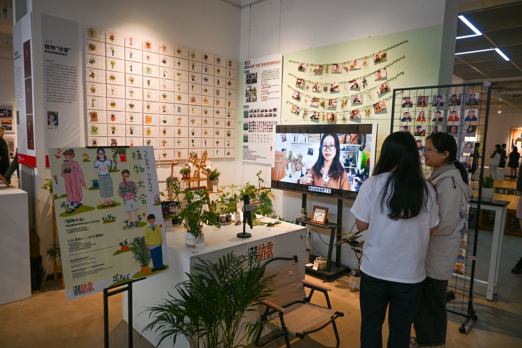 学生给观众讲解作品《植物”访客“》 黄宏杰摄