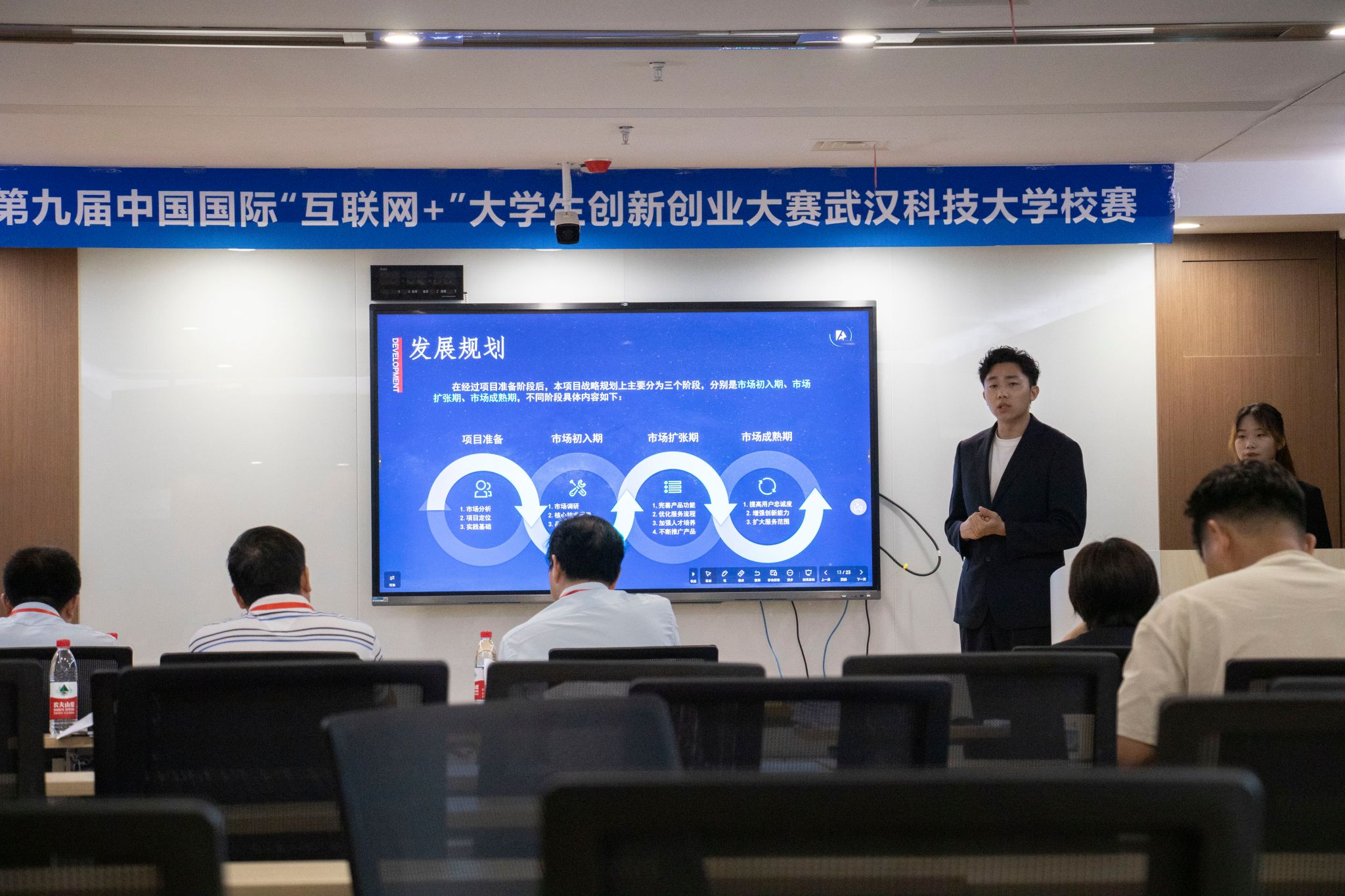 5月20日,第九届中国国际“互联网+”创新创业大赛Beat365中文官方网站现场赛隆重举行。中国国际“互联网+”大学生创新创业大赛,是中国大学生创新创业方面顶级赛事,是Beat365官网认定的三类重大赛事之一。本次大赛自启动以来,师生踊跃参与,累计报名项目2918个,参与学生12835人次。经学院推荐,学校初审,71个优秀参赛项目中经过层层筛选进入现场赛。现场赛分两个组同时进行,在11A517教室进行的是本科生创意组,在11A417教室进行的是综合组。(欧阳一茗 刘靖瑶)