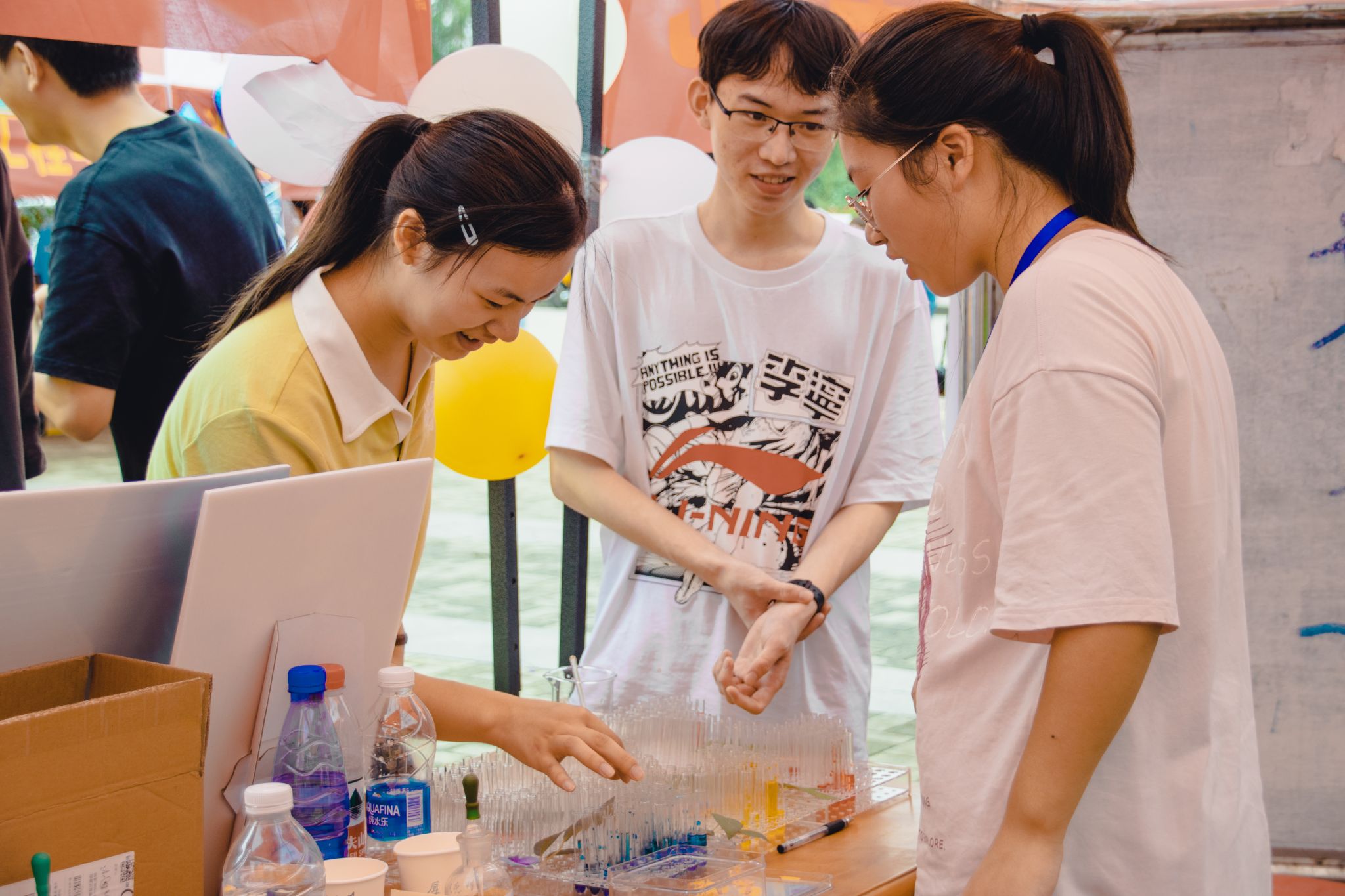 新生对125变色实验产生浓厚兴趣 江子琪摄