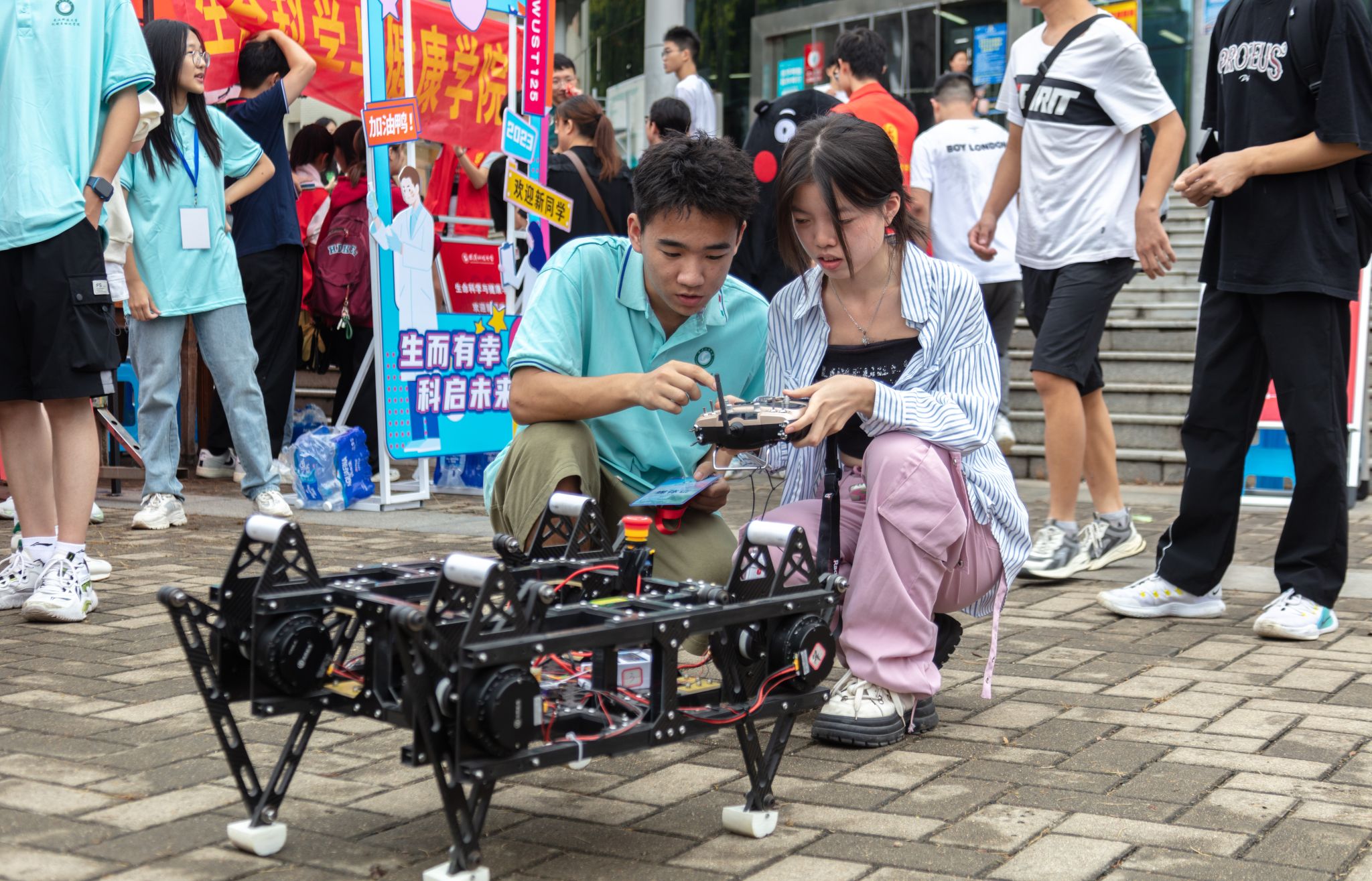 机械学院迎新志愿者指导新生操控机器人 杨佳伟摄
