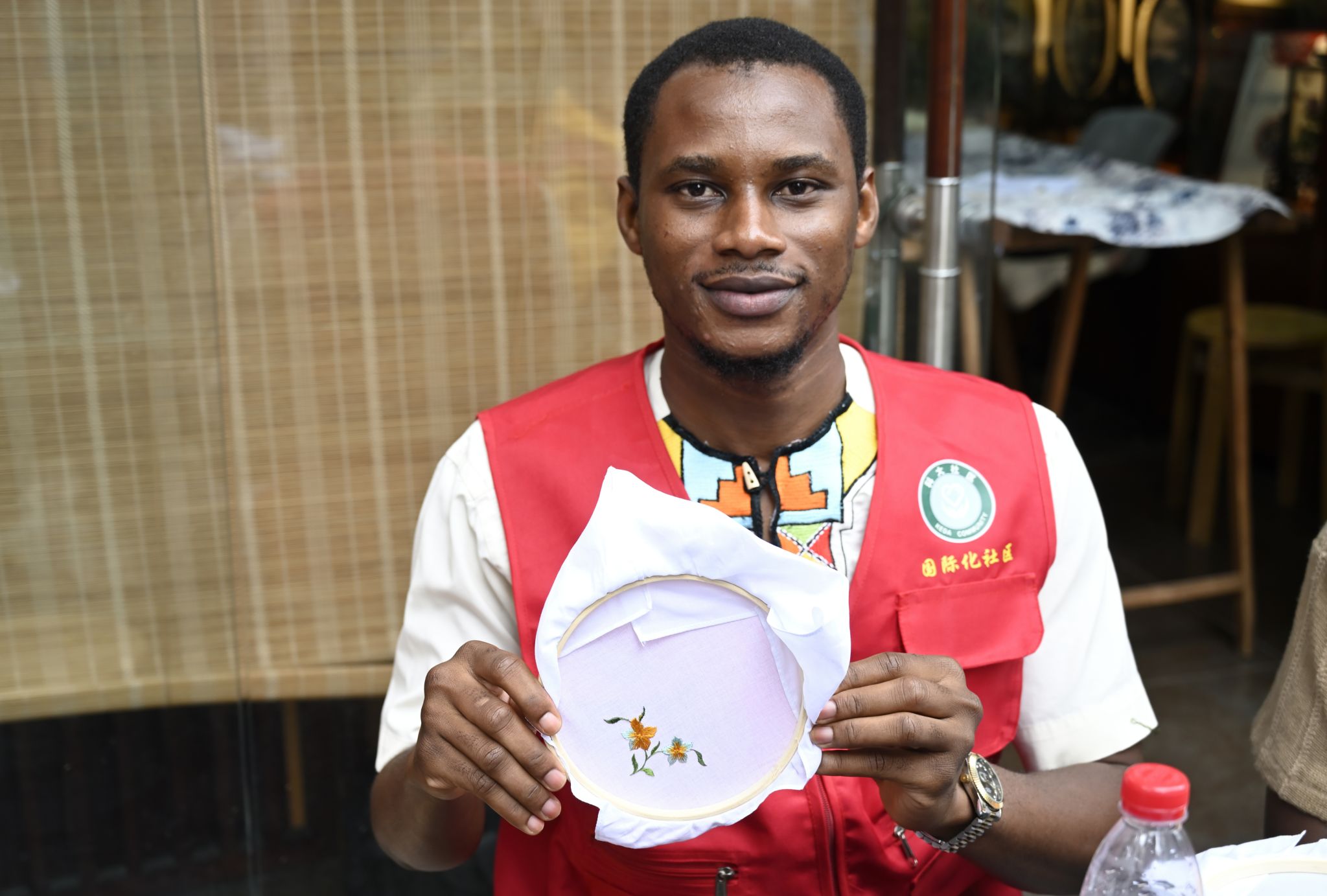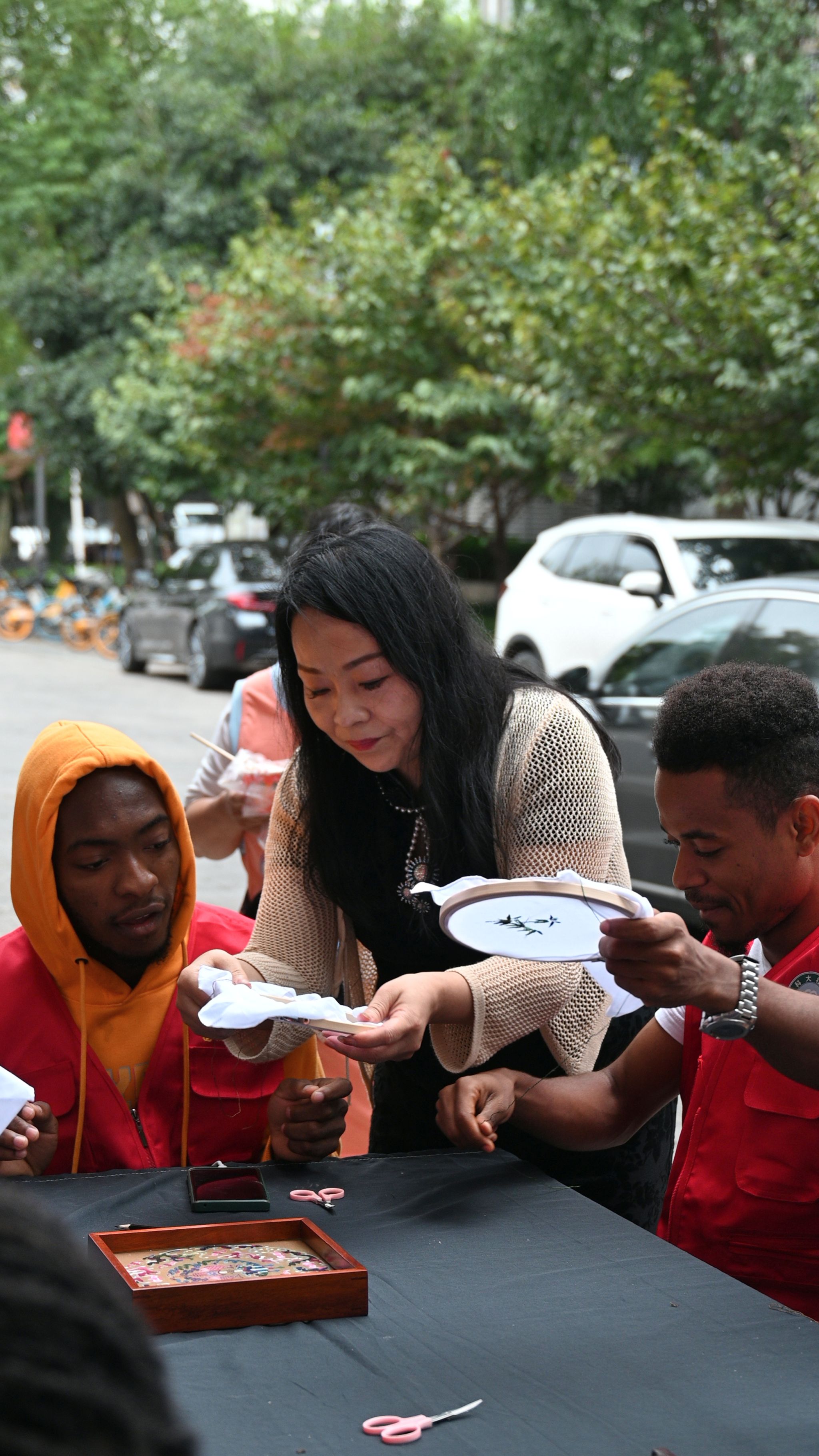 国际学生展示汉绣作品 熊雄摄