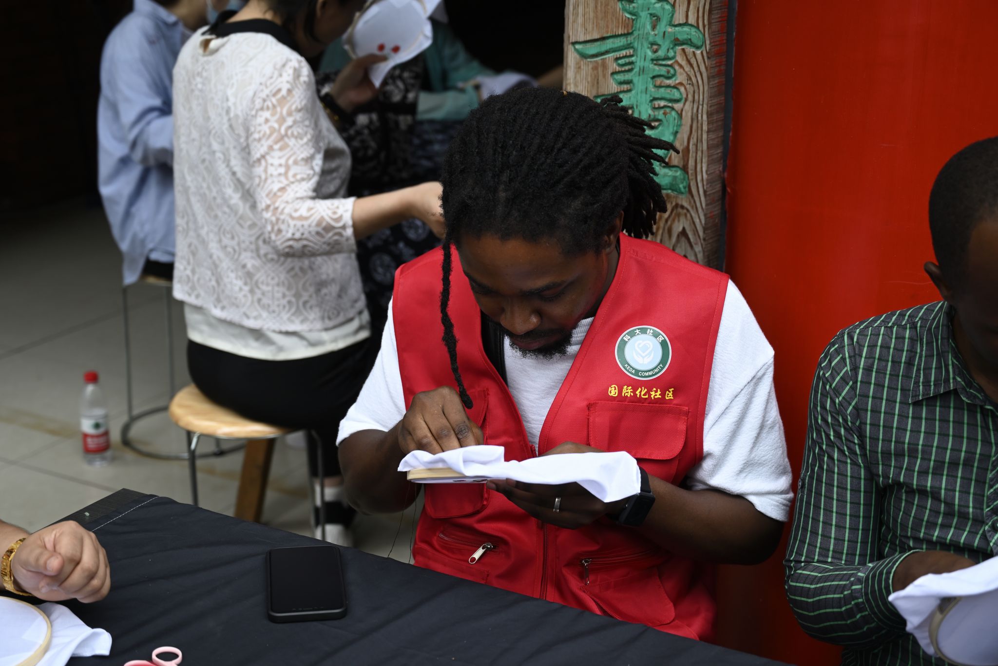 国际学生自行体验汉绣 熊雄摄