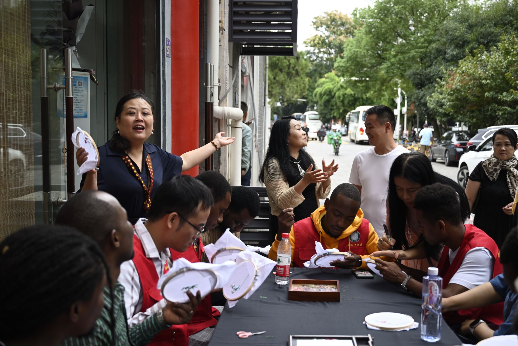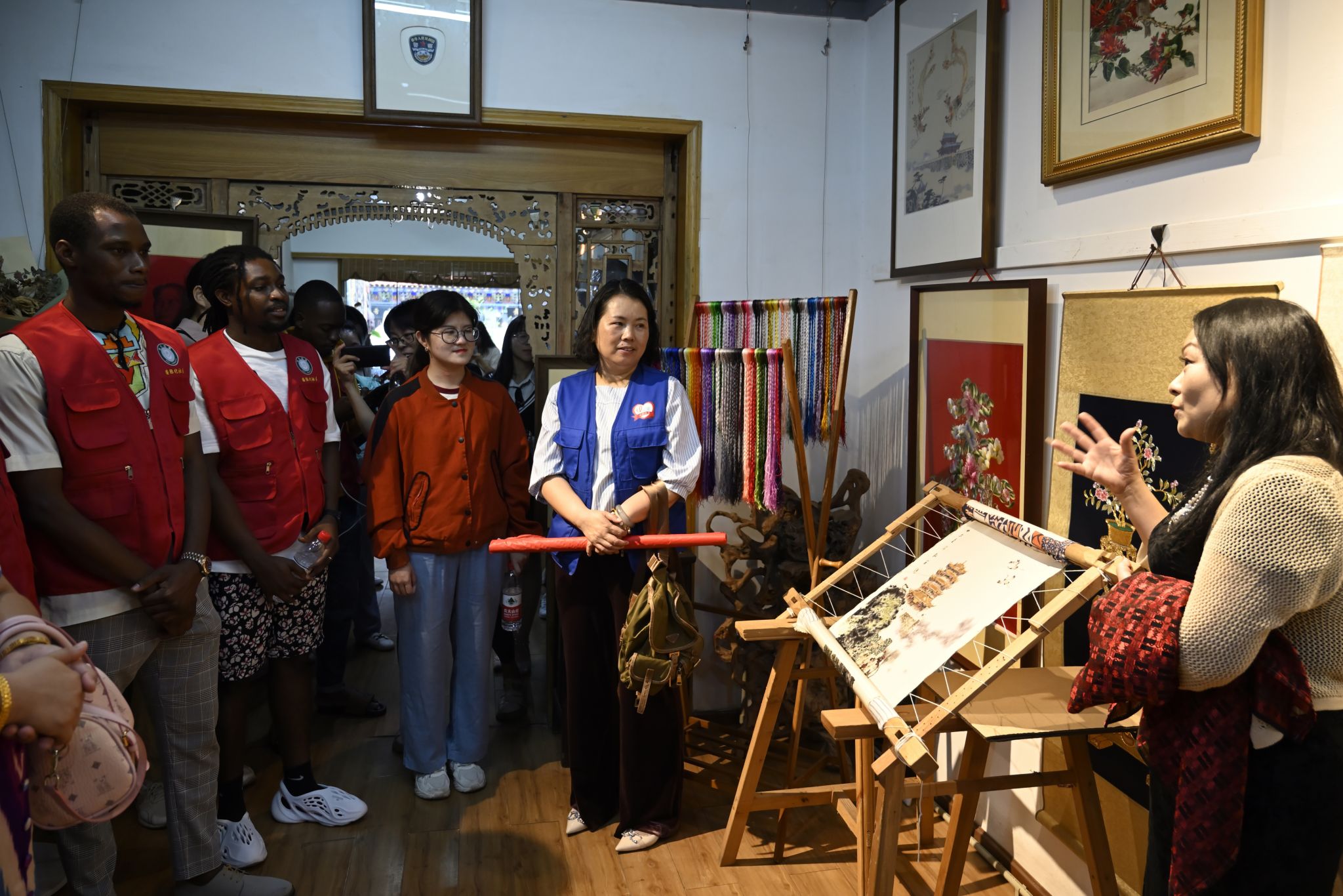 汉绣学员为国际学生示范 熊雄摄