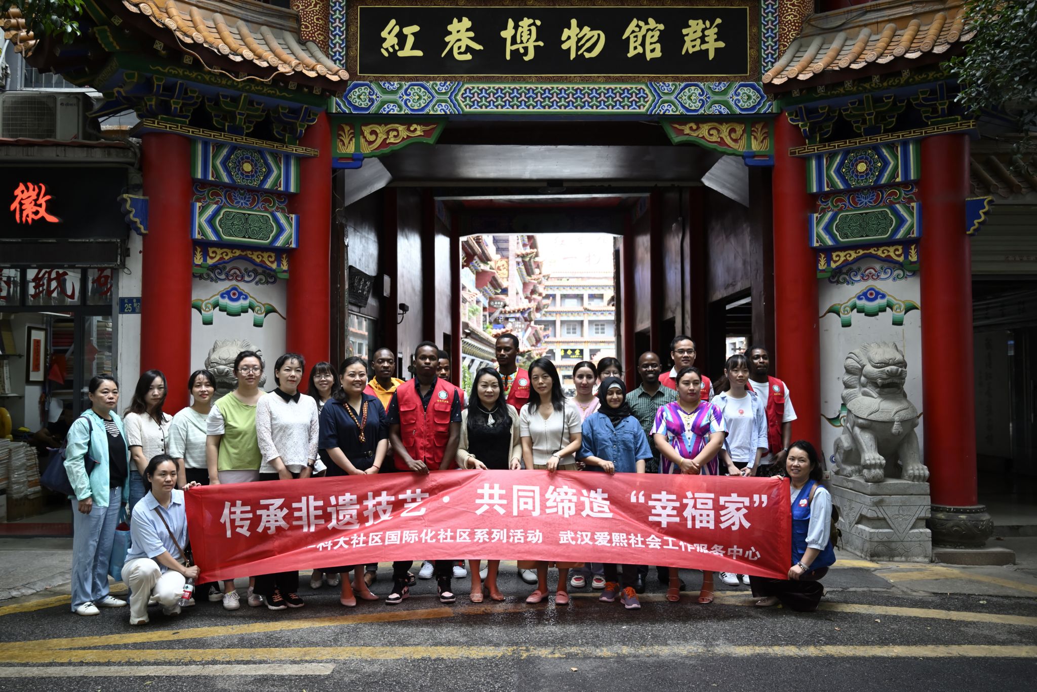 志愿者与国际学生合影 熊雄摄