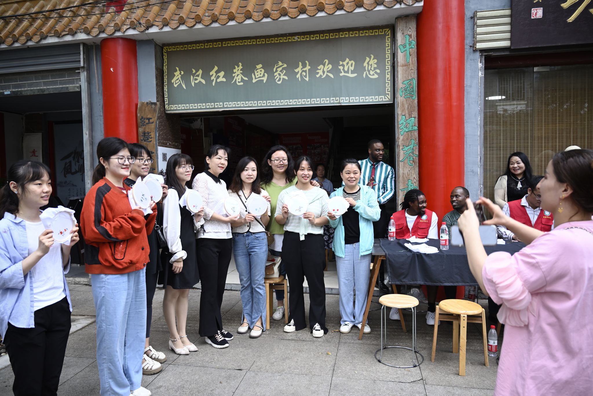 国际学生、志愿者与黄春萍合影 熊雄摄