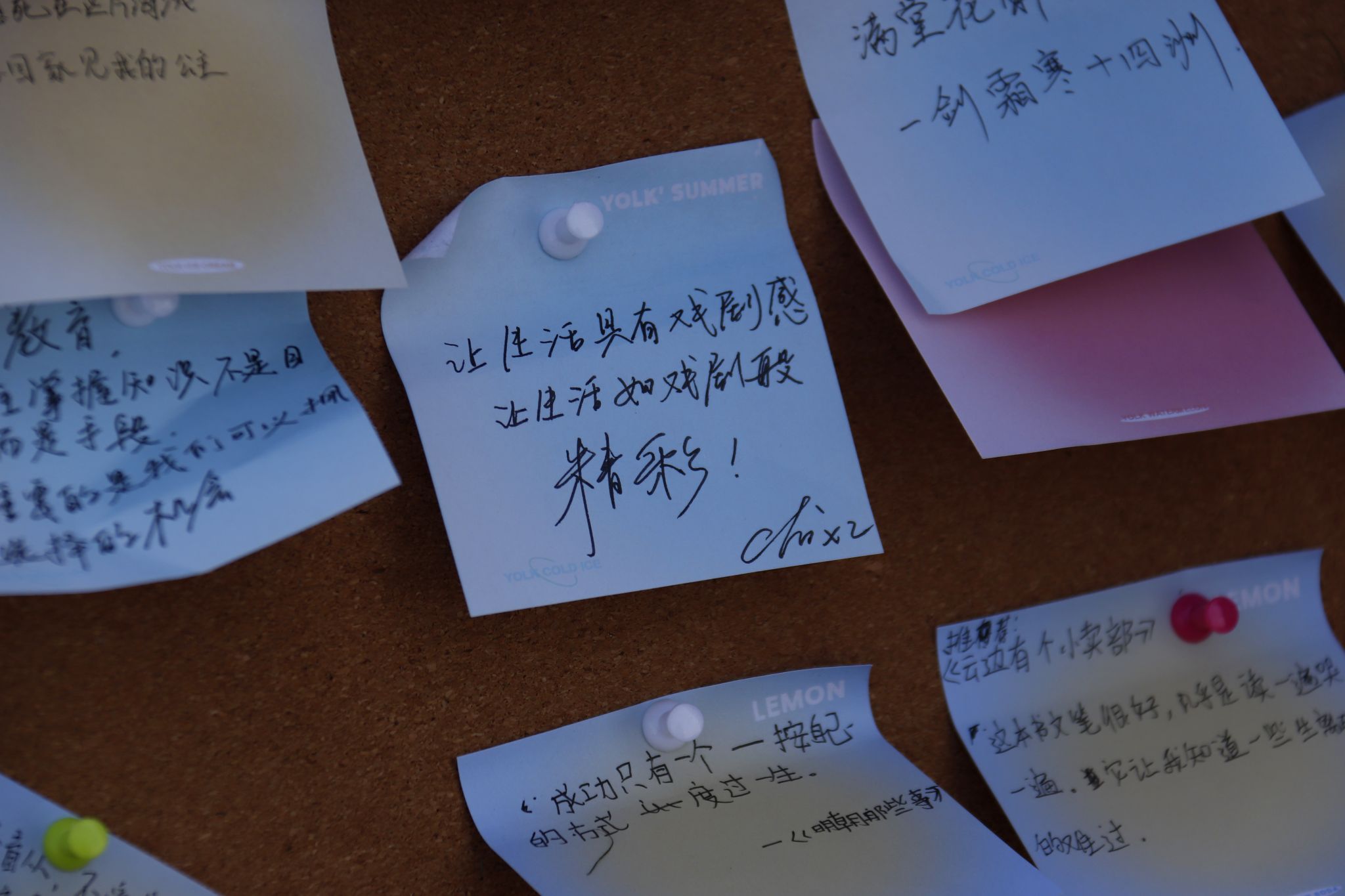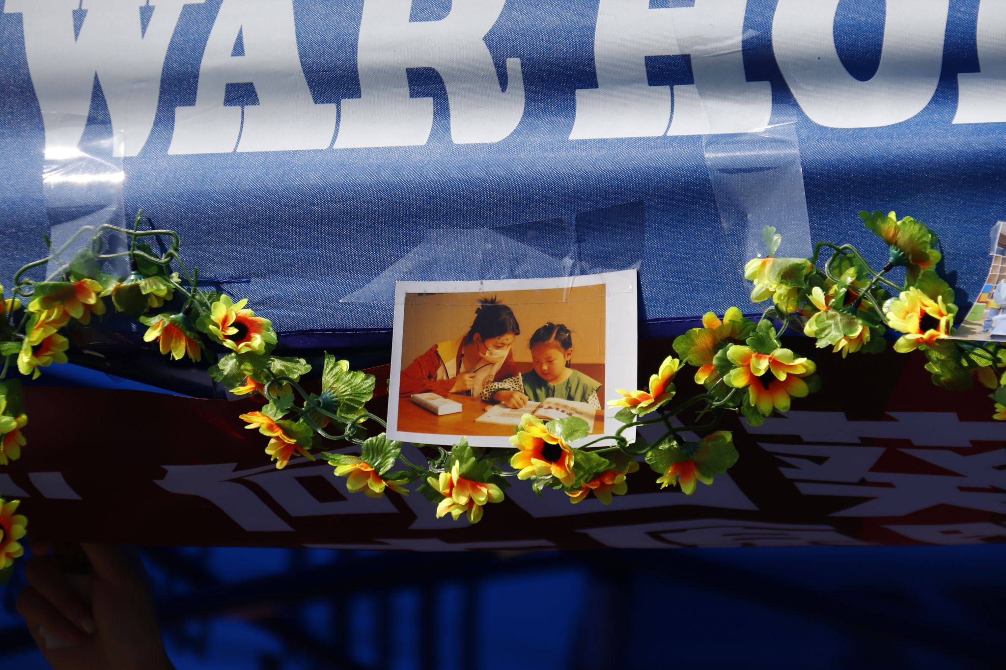 ”向日葵计划“志愿服务队帐篷上贴的志愿活动照片 郭劼摄