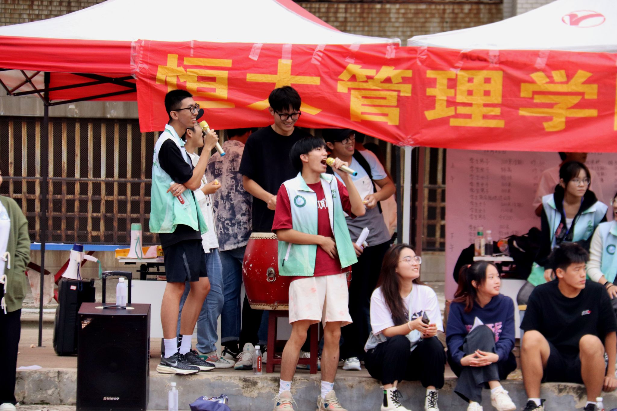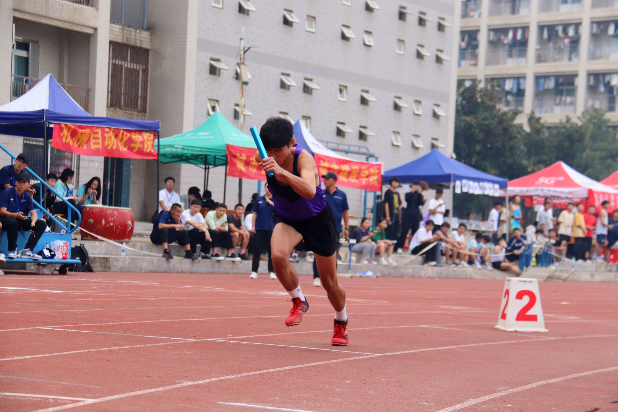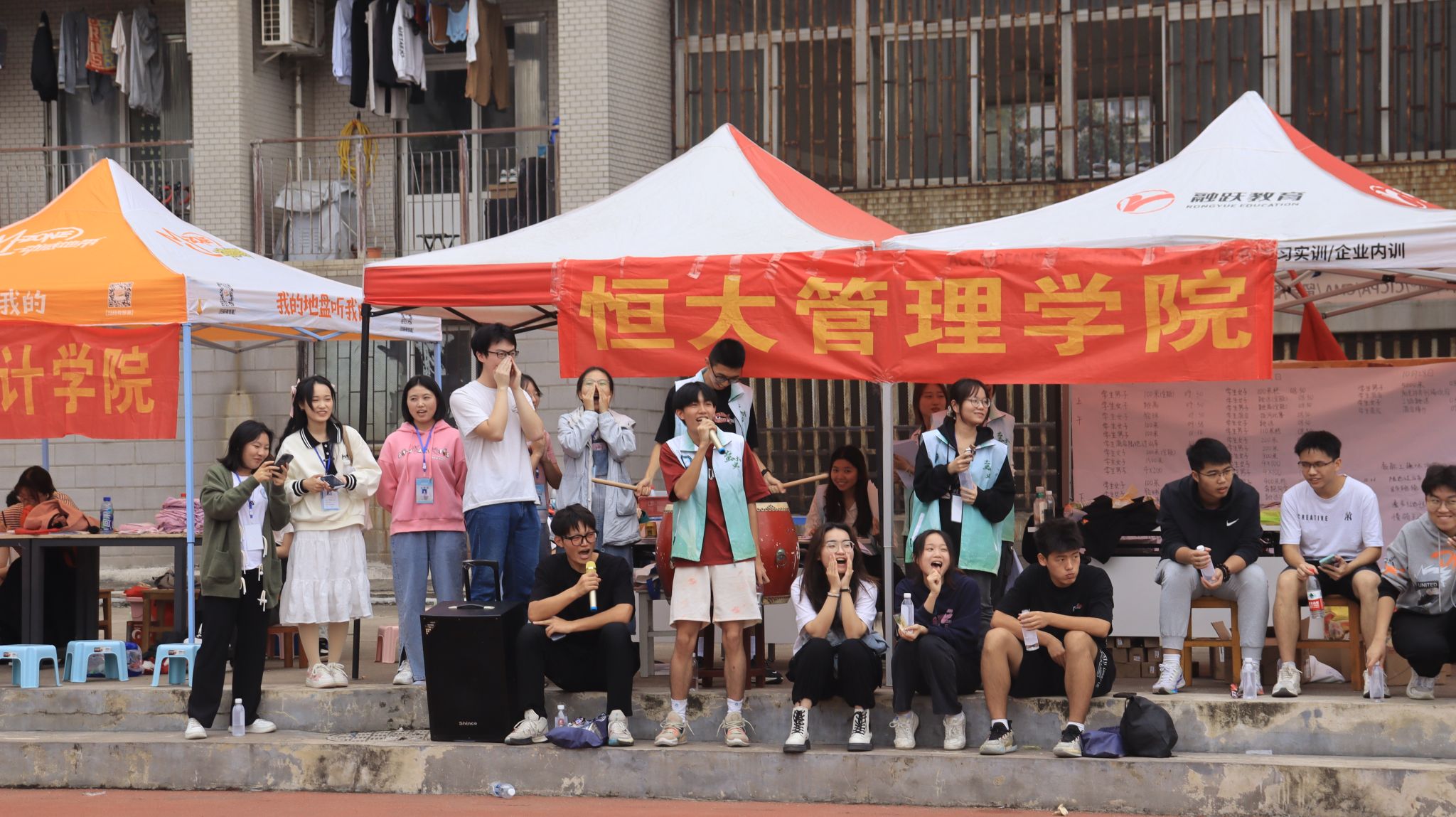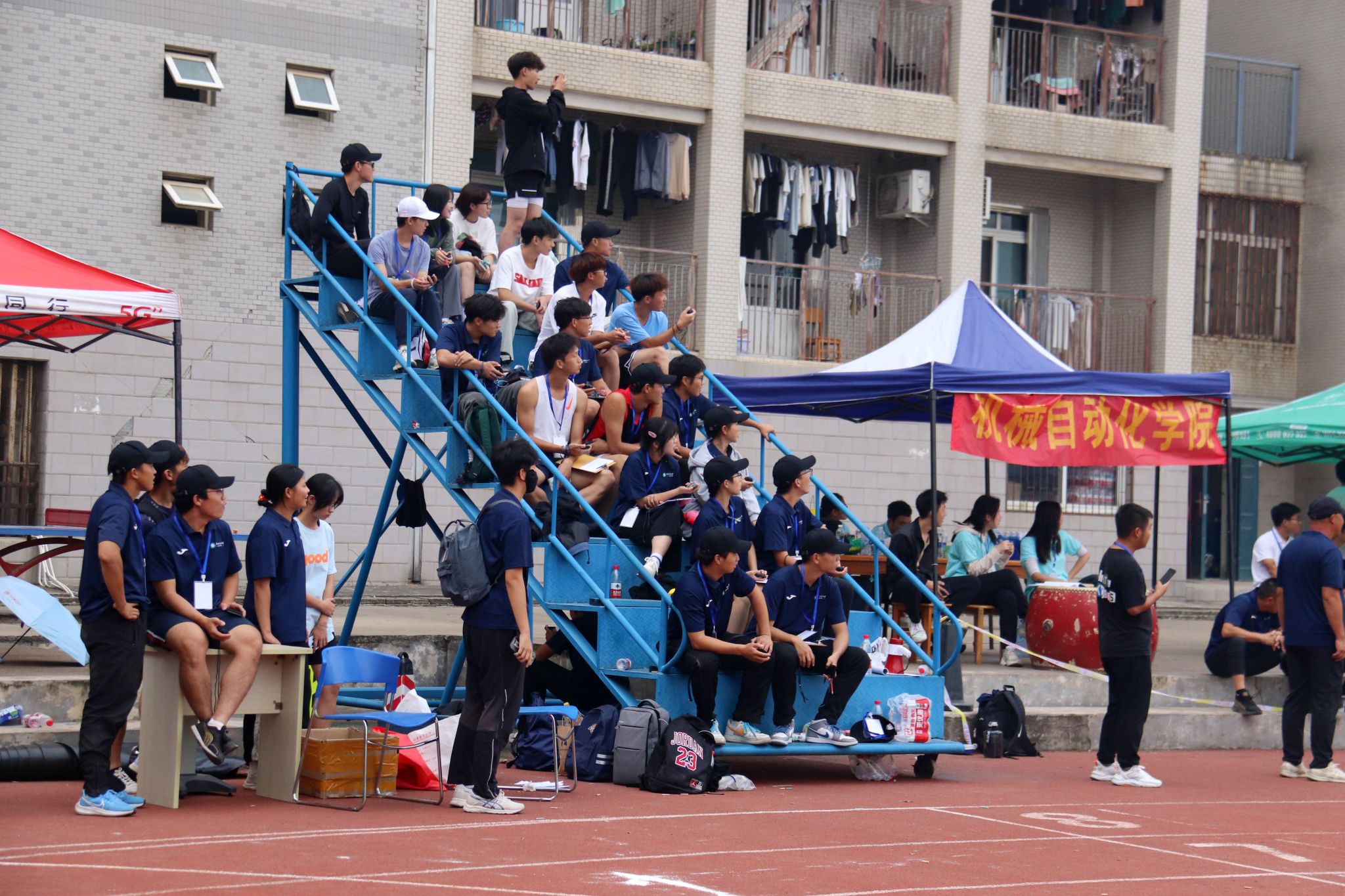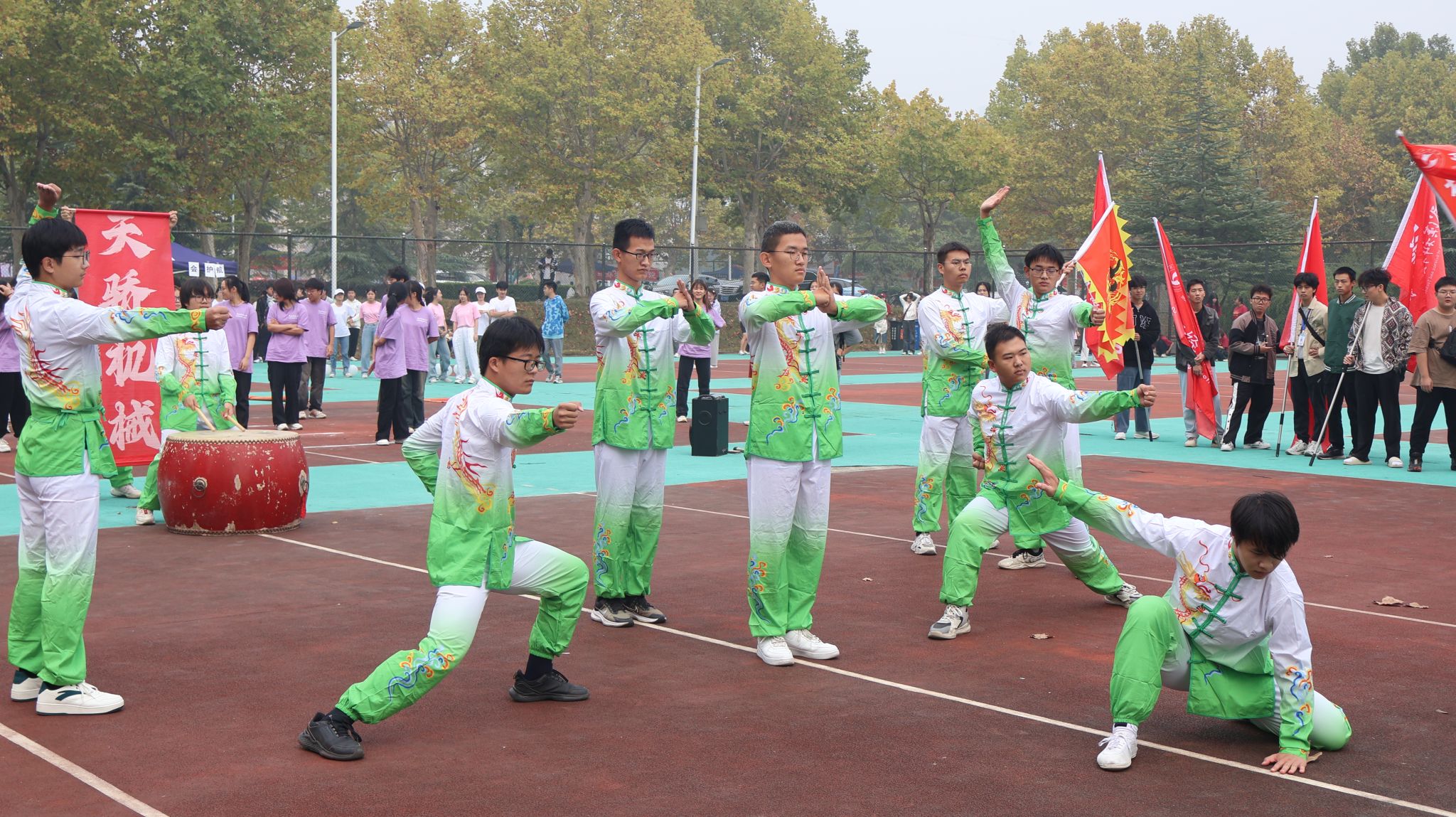 机械学院击鼓为运动员加油 郭劼摄