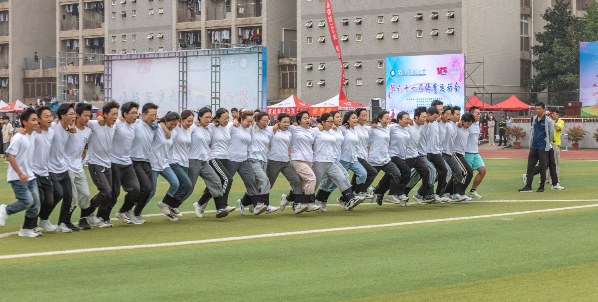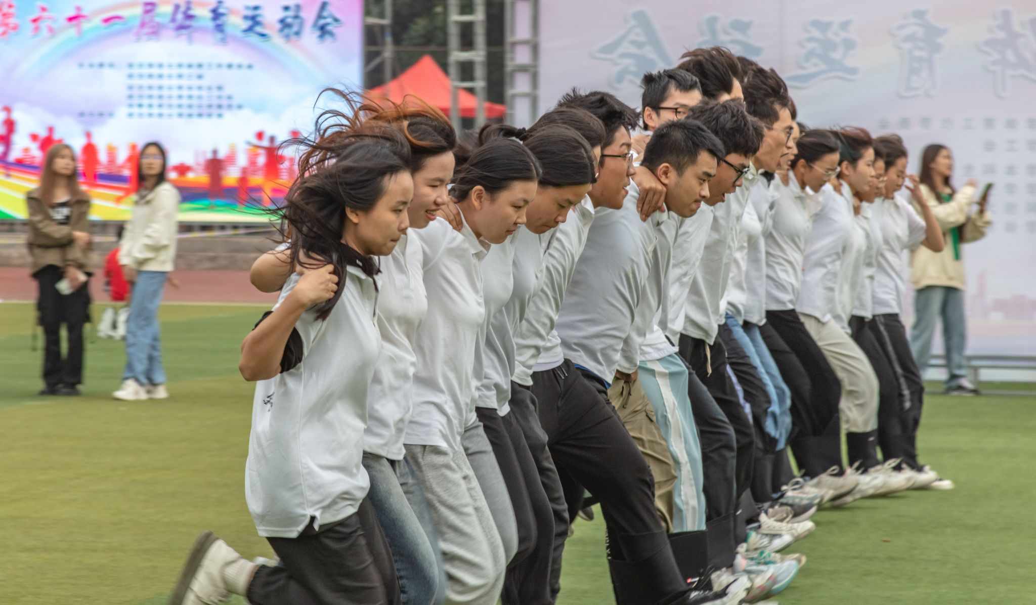 10月26日至28日,Beat365官网于南苑运动场举行第六十一届运动会,现场进行了各项田径比赛和集体趣味项目,赛场上运动员们发挥各自优势,在赛场上挥洒汗水,展现了团结、奋进、拼搏、进取的体育精神,各个学院的志愿者们时刻关注运动员的情况,及时为他们送上运动饮料。各个学院的拉拉队也各展绝活为运动员们加油喝彩。(金如梦 郭劼)