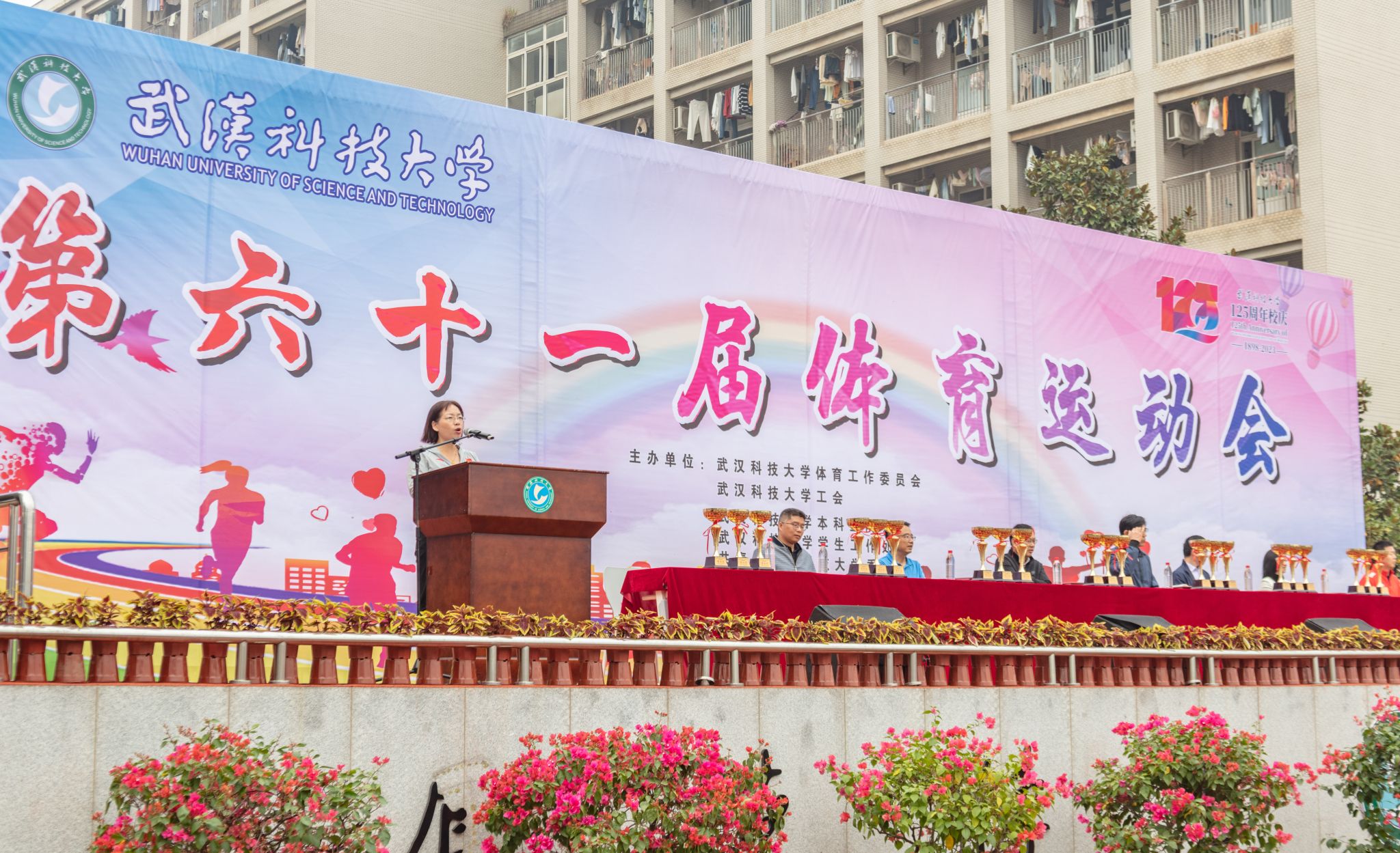 党委宣传部常务副部长饶红亮老师宣布“最美人气方阵 杨佳伟摄