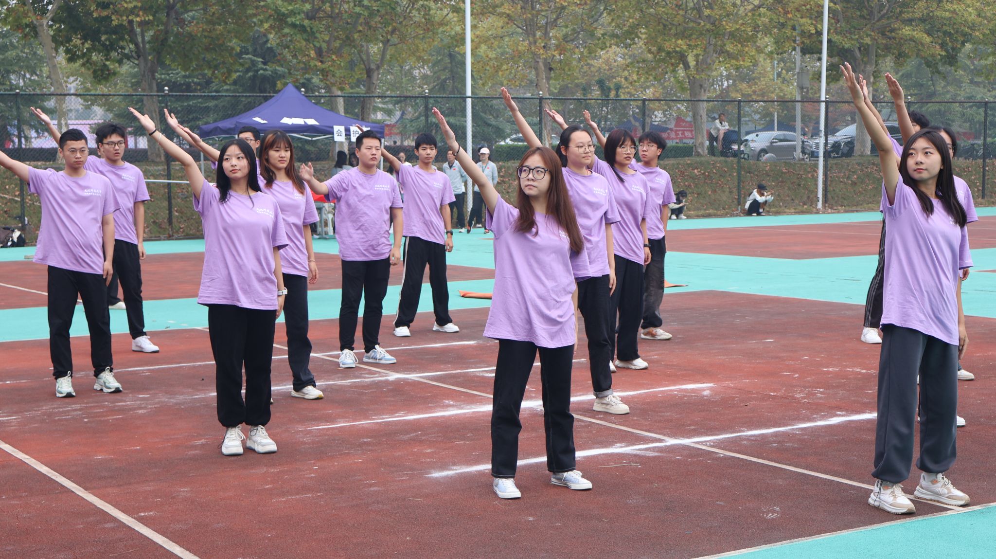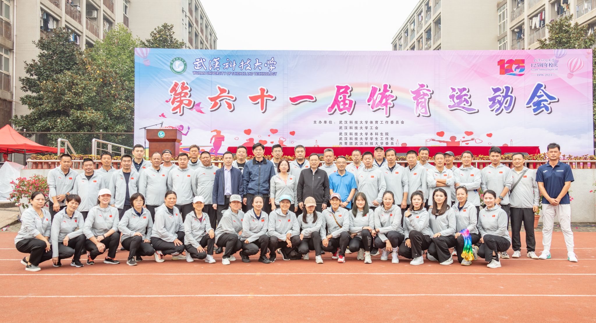 教师团队和体育学院学生代表合影 杨佳伟摄