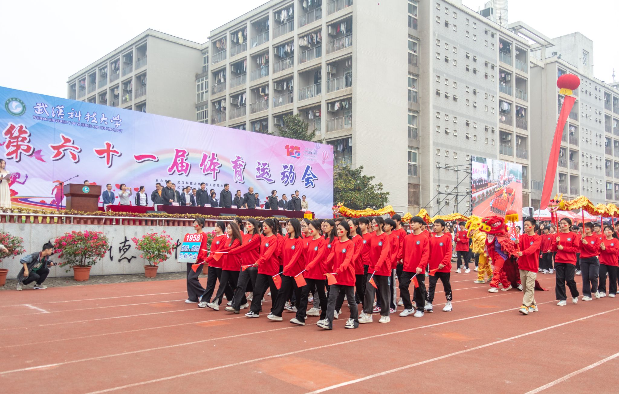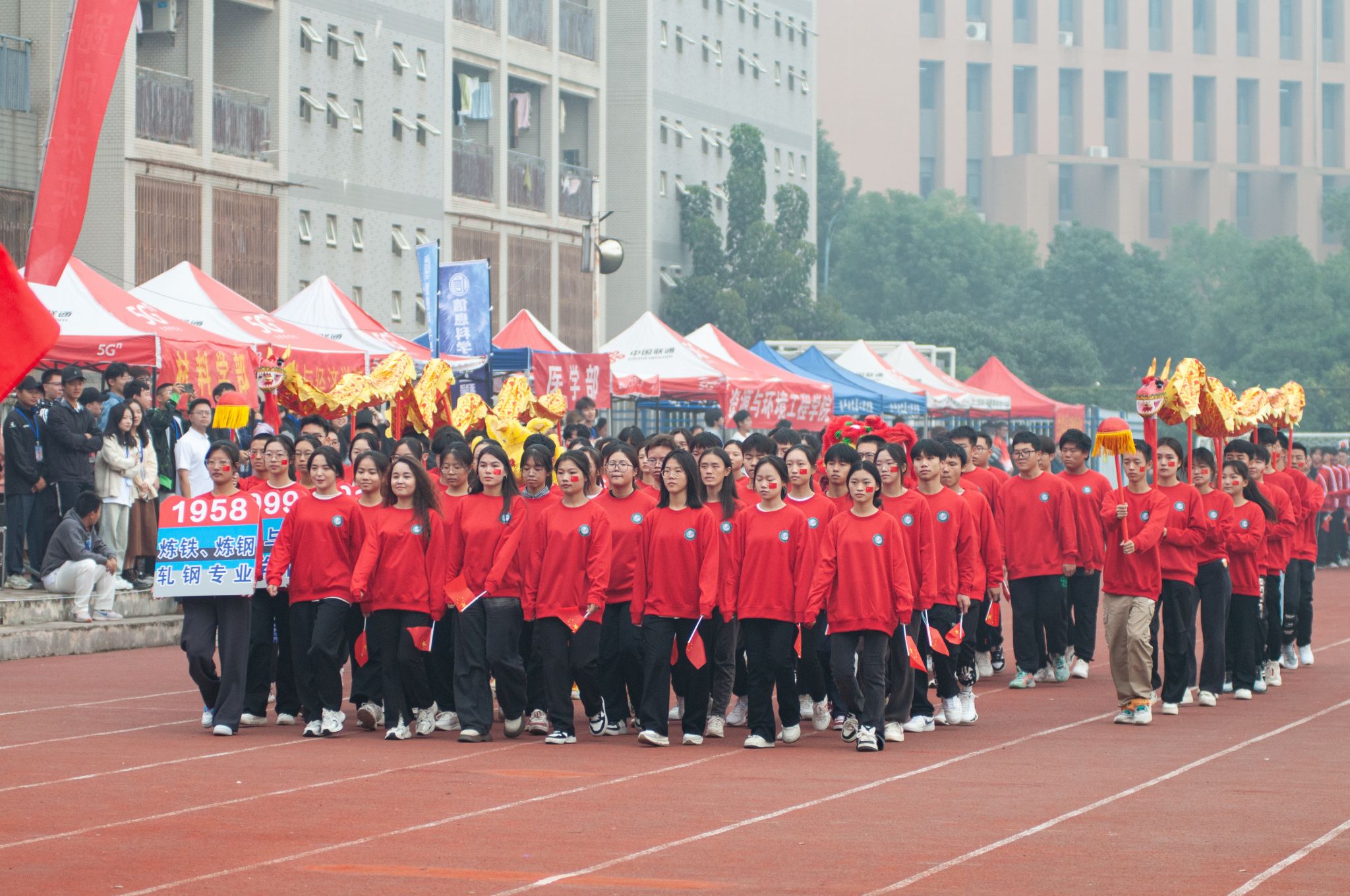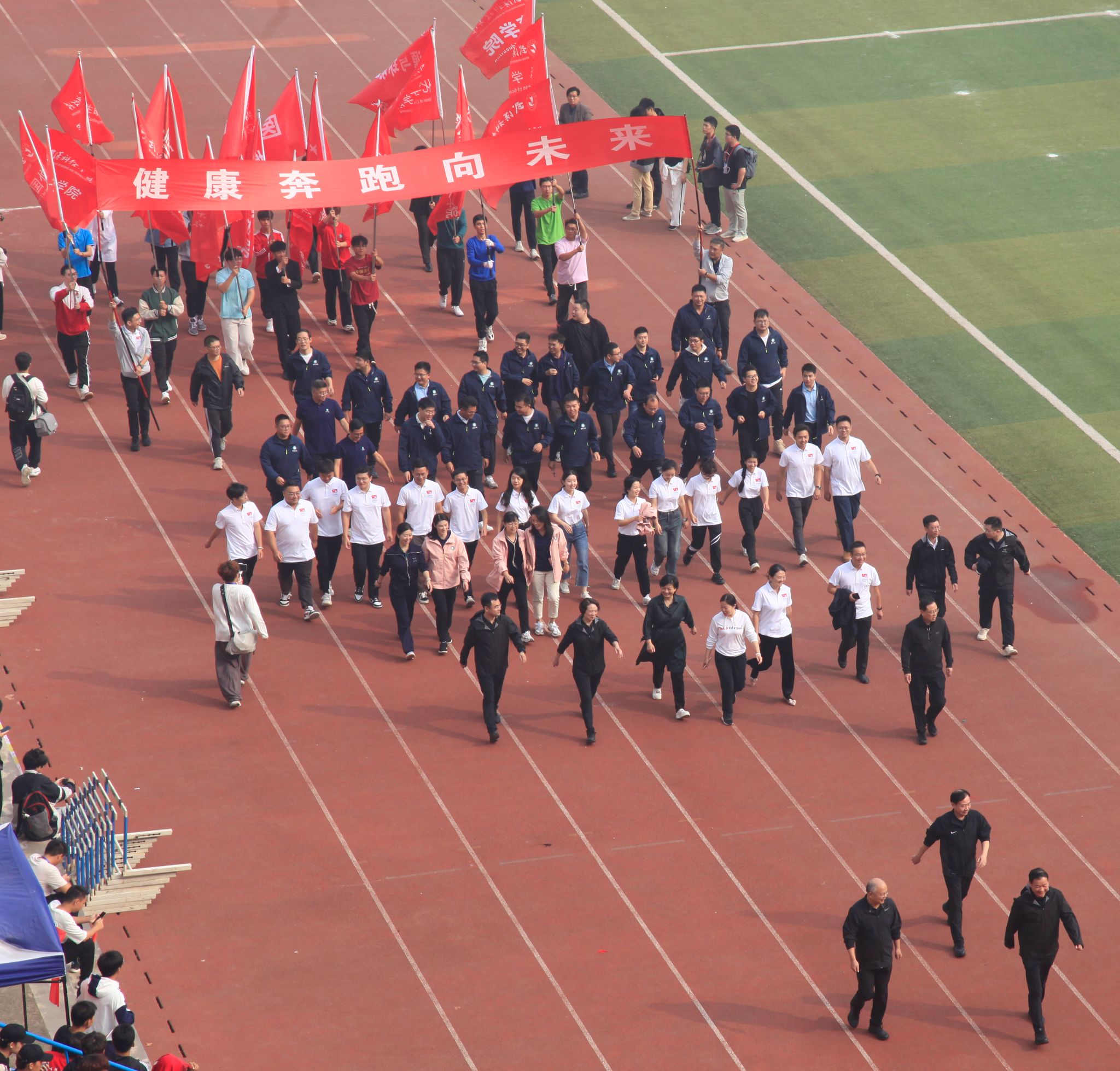 10月26日上午,Beat365官网第六十一届运动会开幕式在南苑操场隆重召开。大会开始后,各代表队依次入场,全体成员奏唱国歌,校长致开幕词后,运动员代表及裁判员代表宣誓,随后运动会宣布开幕。各个学院的方阵整齐划一,展现出高度的纪律性和团队合作精神。同时,各个学院的表演也给观众带来了精彩绝伦的视觉盛宴。团体操表演充满活力,舞龙表演尽显文化底蕴,跆拳道表演展现力量与技巧之美。最后师生百人进行师生健康跑,体现“健康奔跑向未来”的主题,鼓励大家积极参与体育运动。整个开幕式充满了激情和活力,为运动会的顺利进行打下了良好的基础。(田世杰 母鑫宇 王政全)