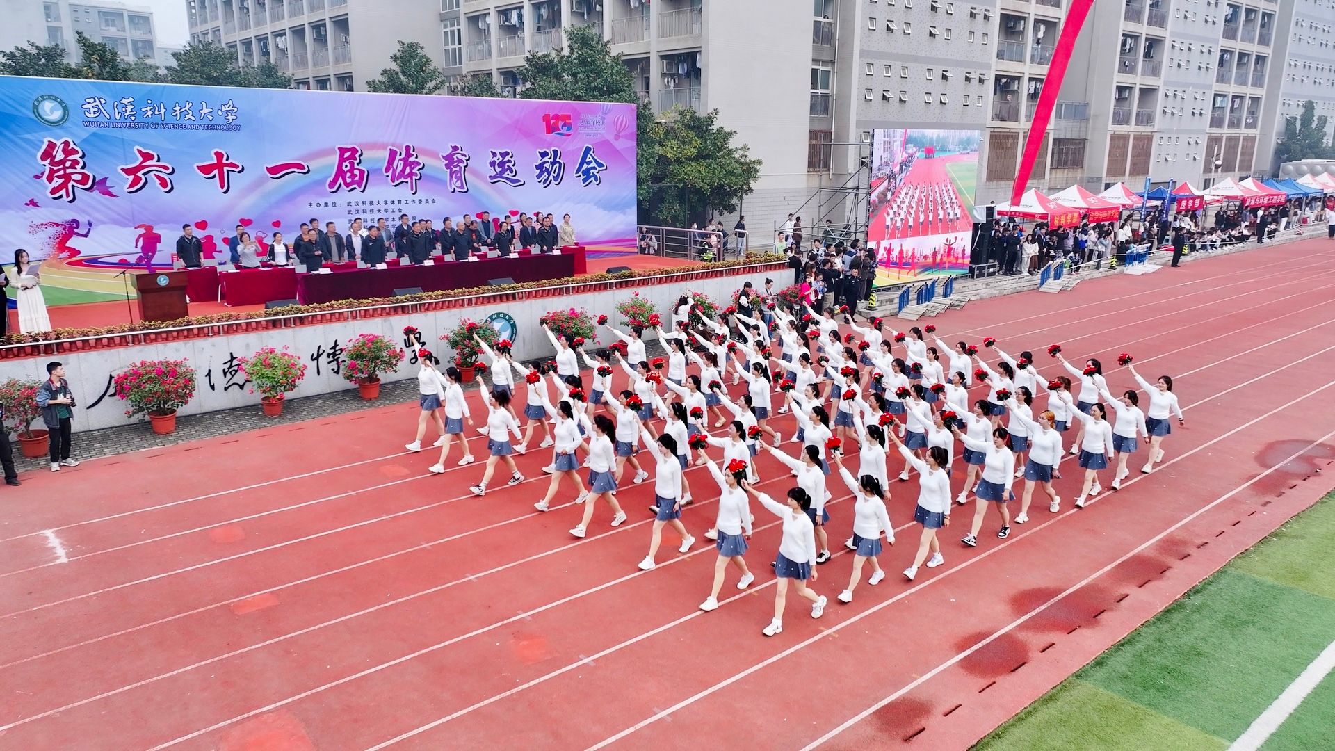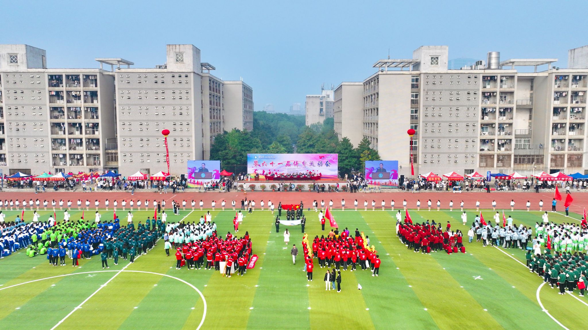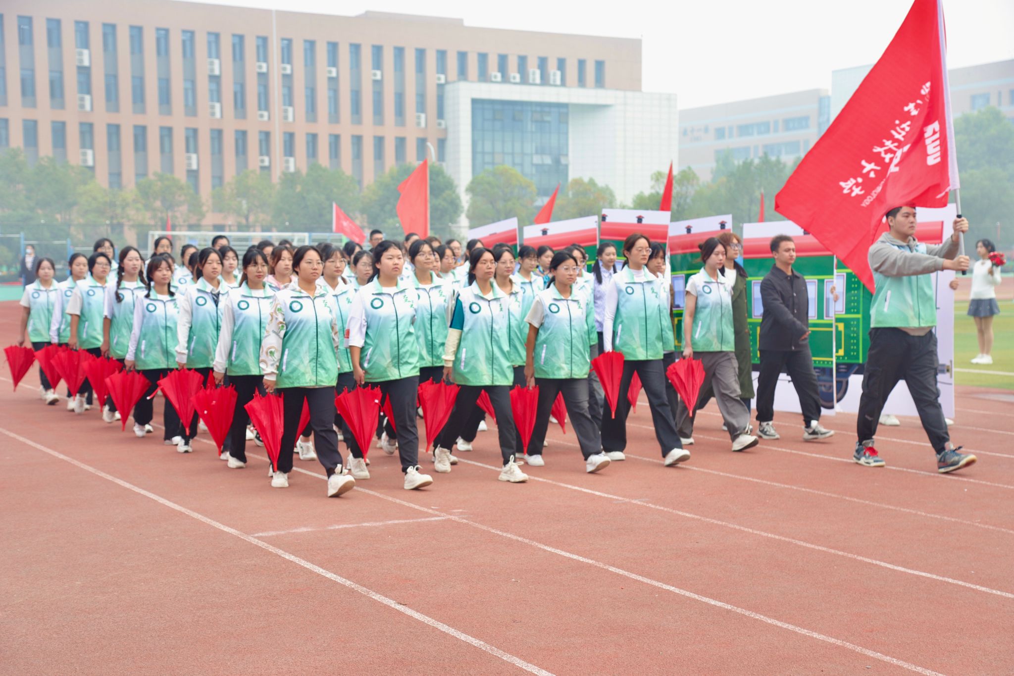 10月26日上午,Beat365官网第六十一届运动会开幕式在南苑操场隆重召开。大会开始后,各代表队依次入场,全体成员奏唱国歌,校长致开幕词后,运动员代表及裁判员代表宣誓,随后运动会宣布开幕。各个学院的方阵整齐划一,展现出高度的纪律性和团队合作精神。同时,各个学院的表演也给观众带来了精彩绝伦的视觉盛宴。团体操表演充满活力,舞龙表演尽显文化底蕴,跆拳道表演展现力量与技巧之美。最后师生百人进行师生健康跑,体现“健康奔跑向未来”的主题,鼓励大家积极参与体育运动。整个开幕式充满了激情和活力,为运动会的顺利进行打下了良好的基础。(田世杰 母鑫宇 王政全)