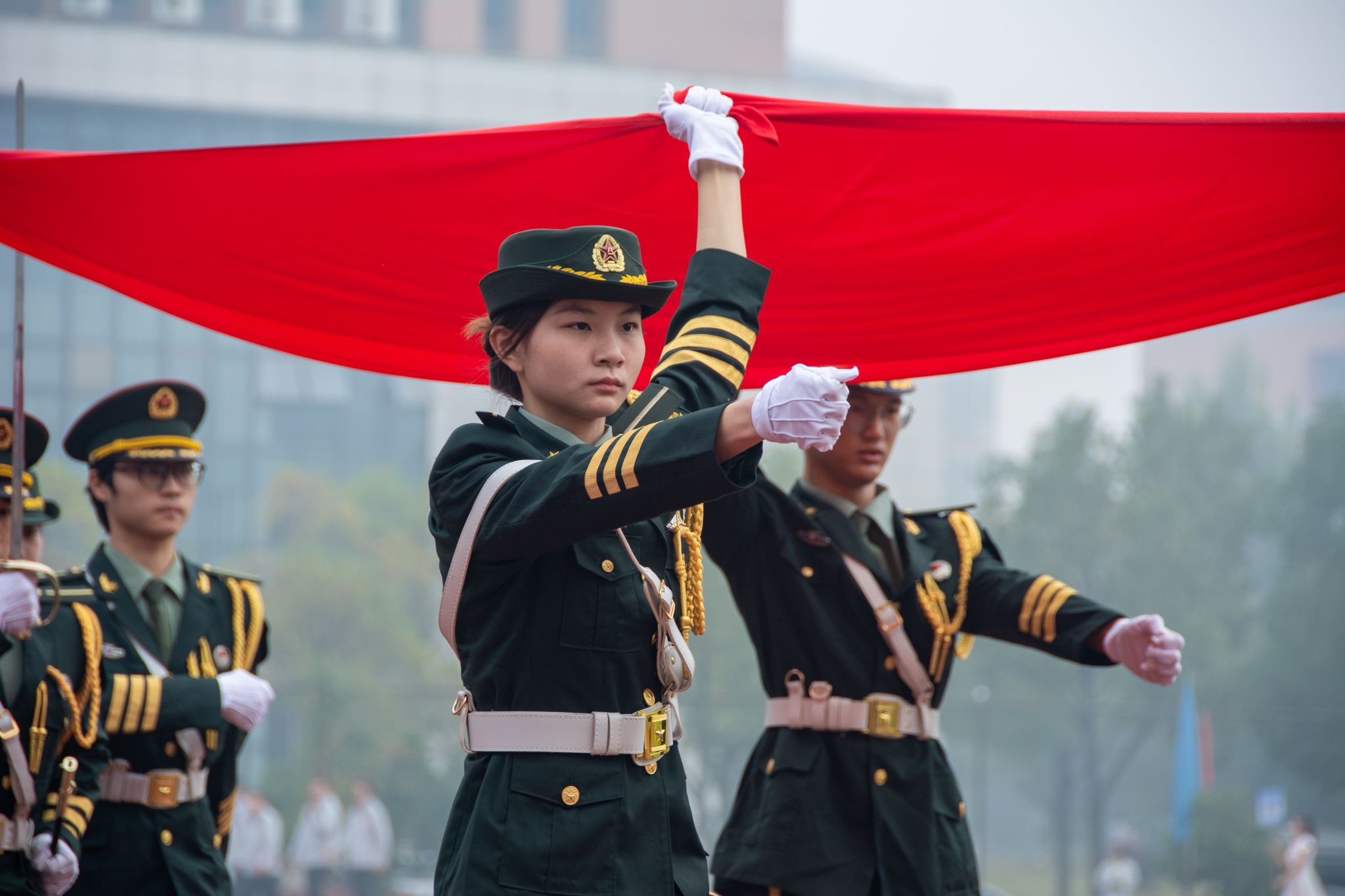 红旗方阵入场 梁绮琪摄