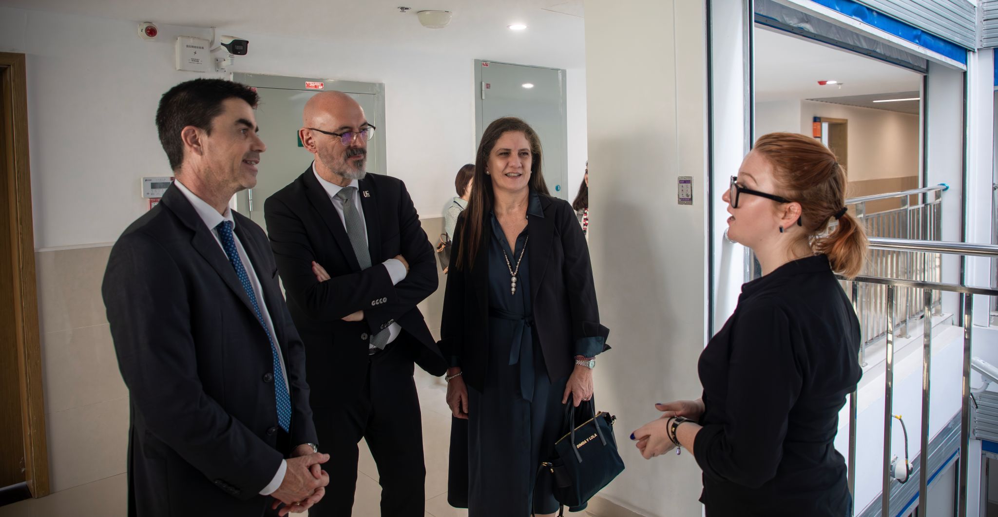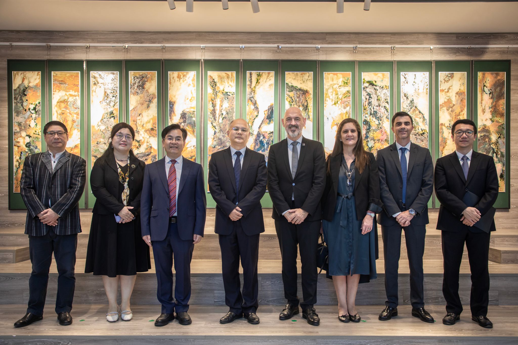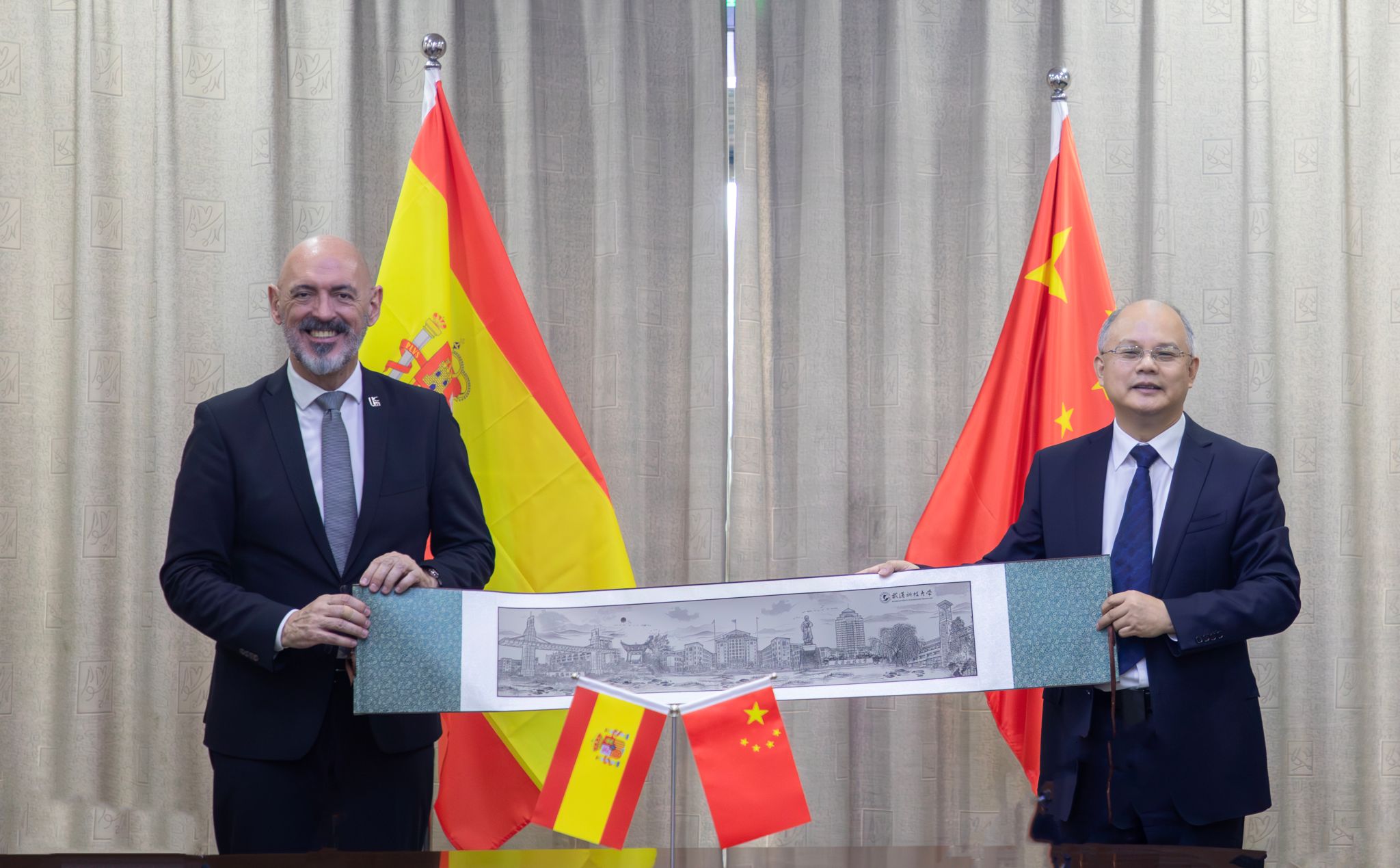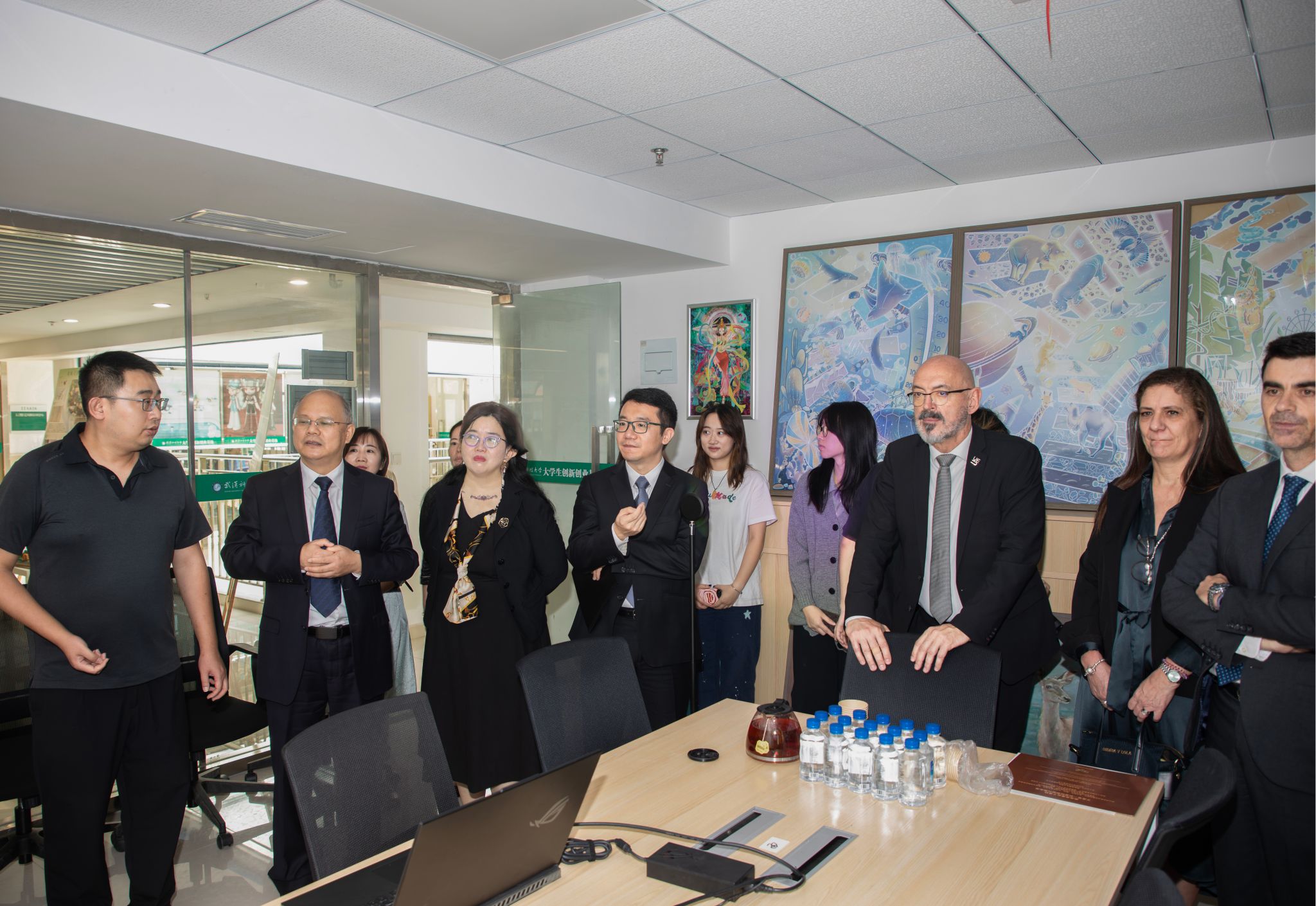 11月3日,西班牙马德里康普顿斯大学校长华金·戈雅切·戈尼一行来校访问。省教育厅厅长周静、校党委书记徐雁冰在华金校长一行下榻酒店座谈交流。校长倪红卫在黄家湖校区与来宾会晤,并带领来宾参观校园。