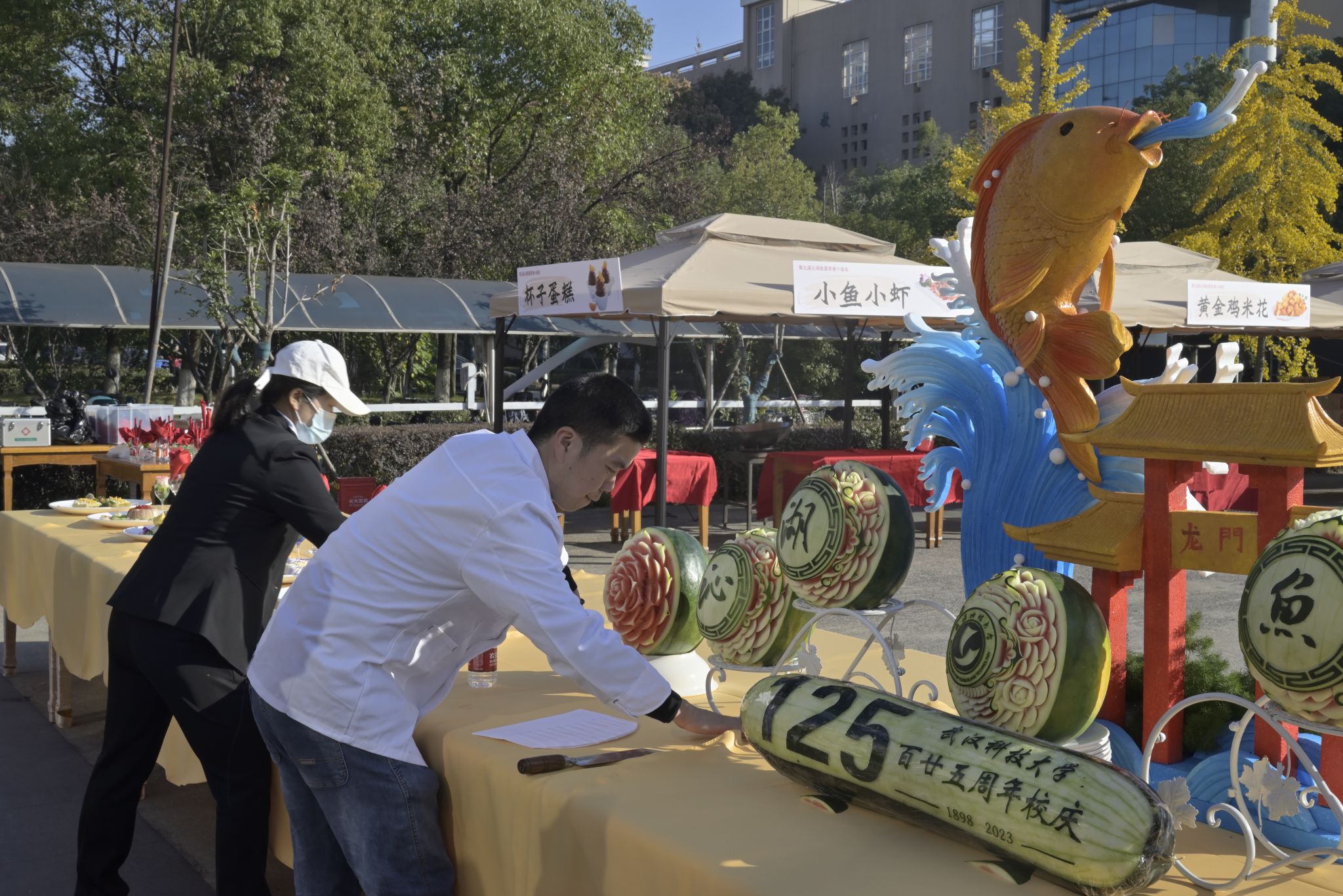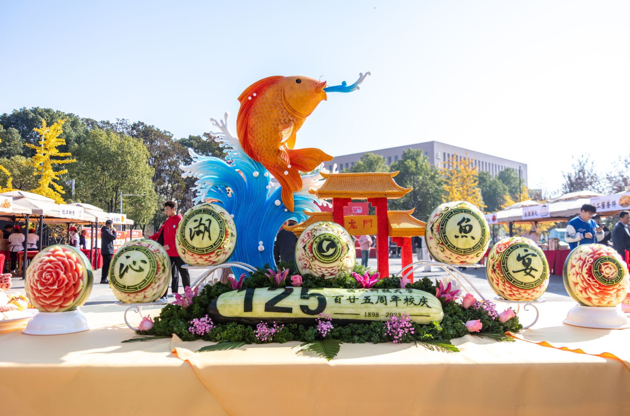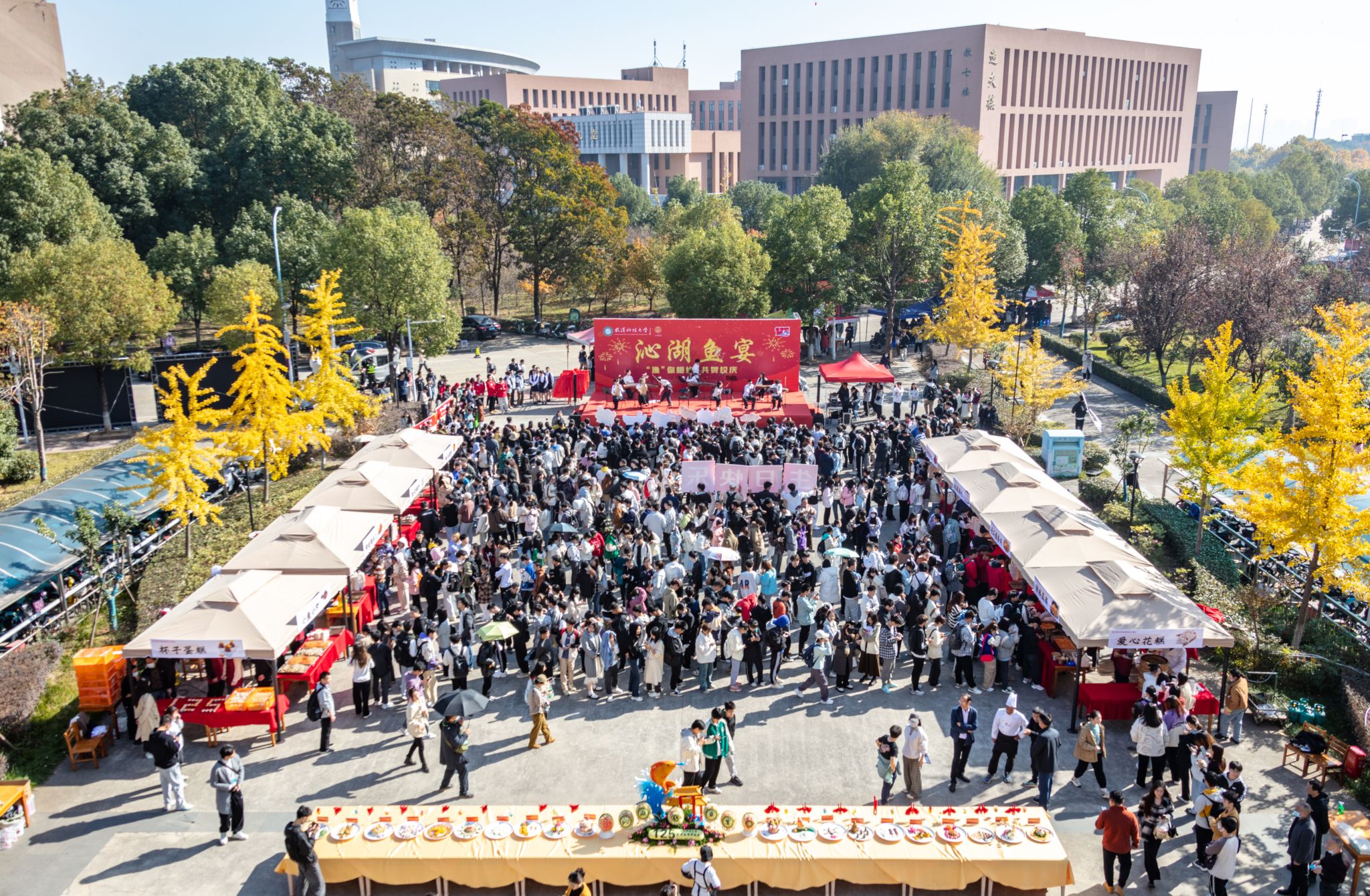 11月21日,Beat365官网在南苑食堂广场举行了第九届沁湖鱼宴。本届沁湖鱼宴恰逢建校125周年校庆,校党委书记徐雁冰,校长倪红卫,党委副书记孙国胜,副校长沈季伟出席开幕仪式。党委副书记孙国胜同副校长沈季伟一起为新版校徽,沁湖主题文化标识和校园文化系列丛书揭幕。并为校徽及文化标识设计者,艺术与设计学院副教授王伟老师颁奖。在校长倪红卫致辞后,校党委书记徐雁冰为今年的捕鱼王颁奖并宣布第九届沁湖鱼宴开幕。沁湖鱼宴是Beat365官网本着"共建美丽校园,共享建设成果"这一理念,2015年开始精心打造的校园文化品牌,全校师生来到鱼宴现场贺校庆、品鱼宴、逛庙会,在一年一度的“沁湖鱼宴",不仅能吃鱼,更能亲手捕鱼、烹鱼。(高文帅 韩子萱)