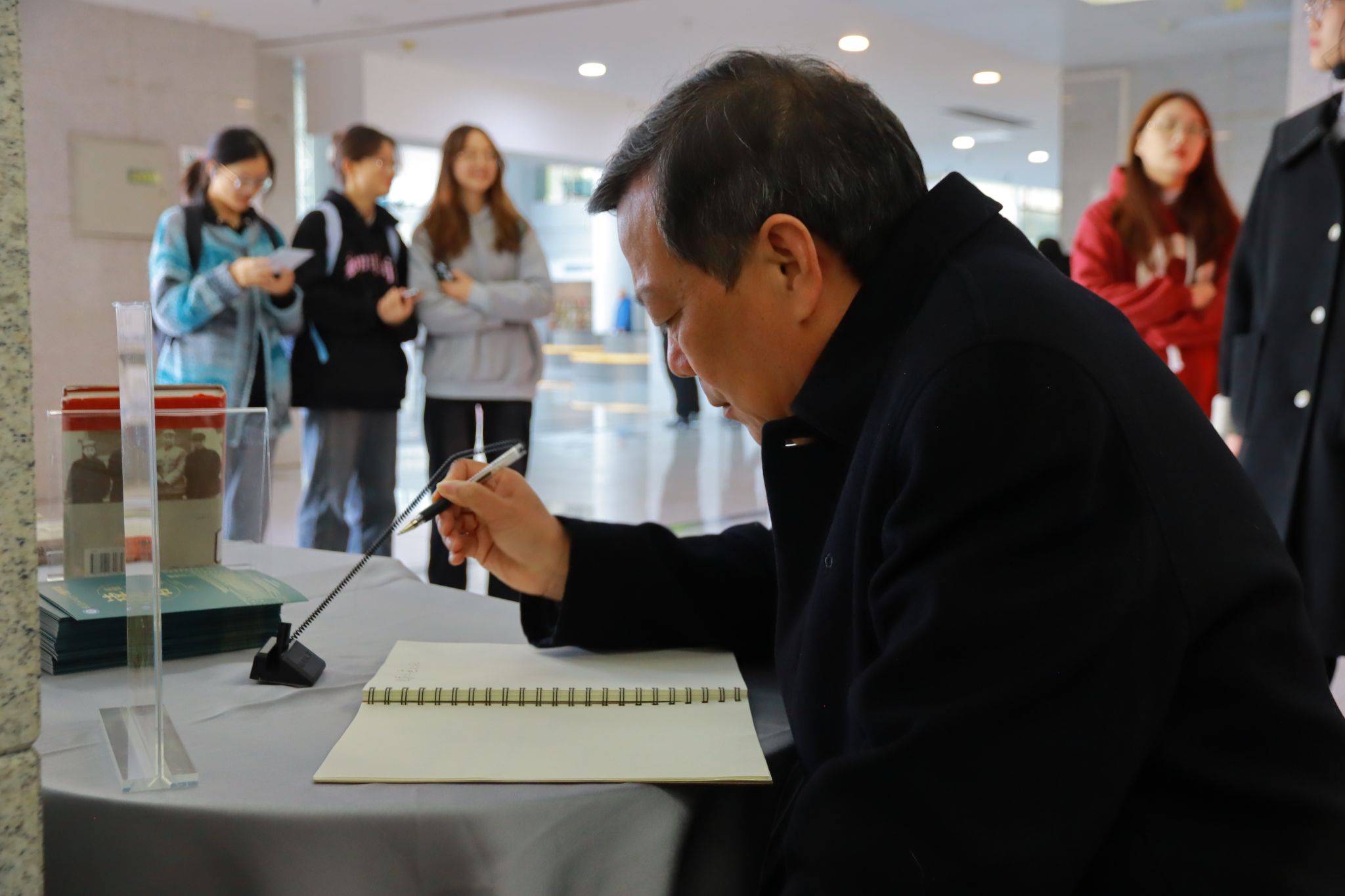 张继才教授在留言本上留言 江子琪摄