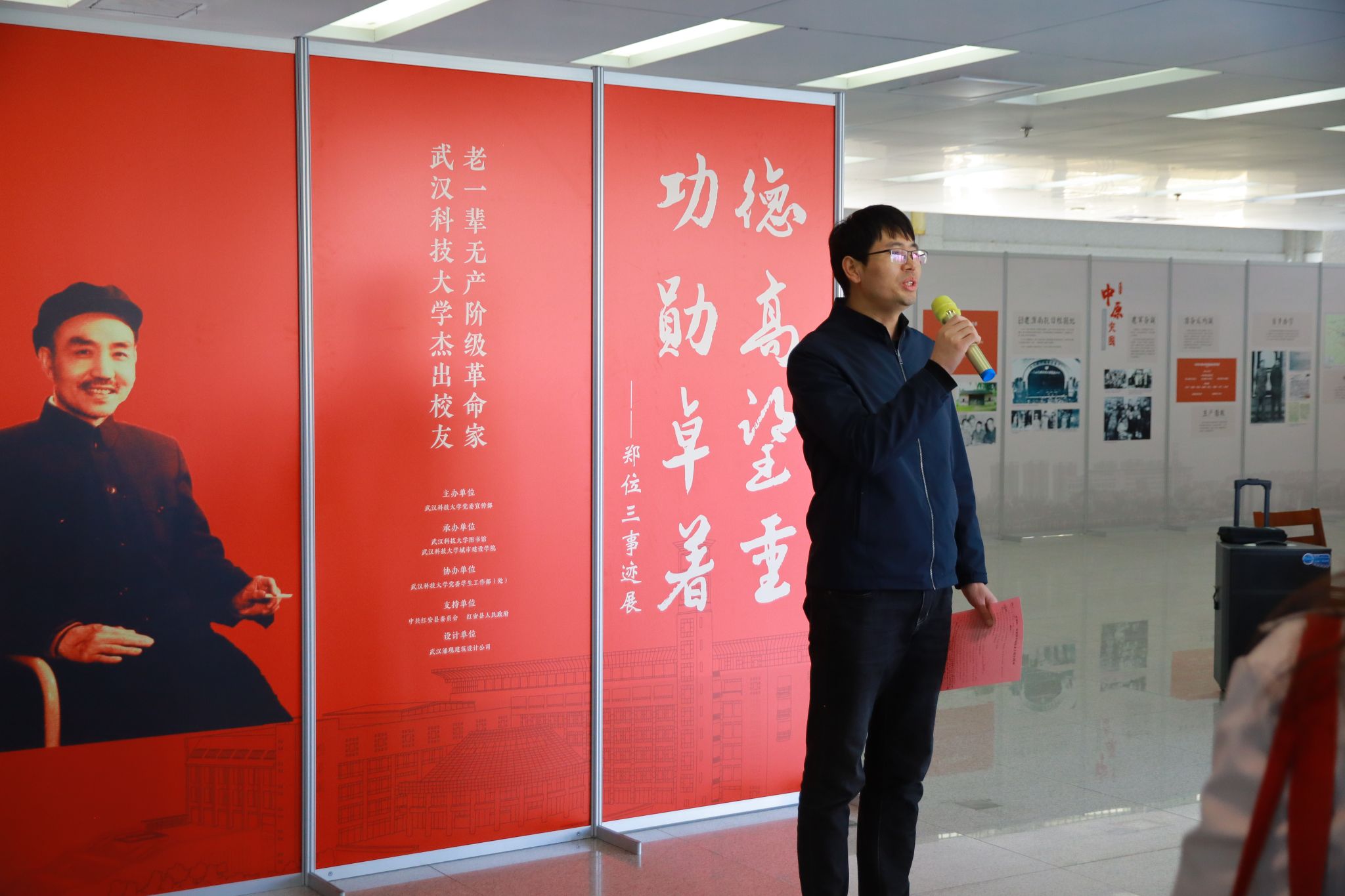 图书馆志愿者为各位代表讲解郑位三事迹 江子琪摄