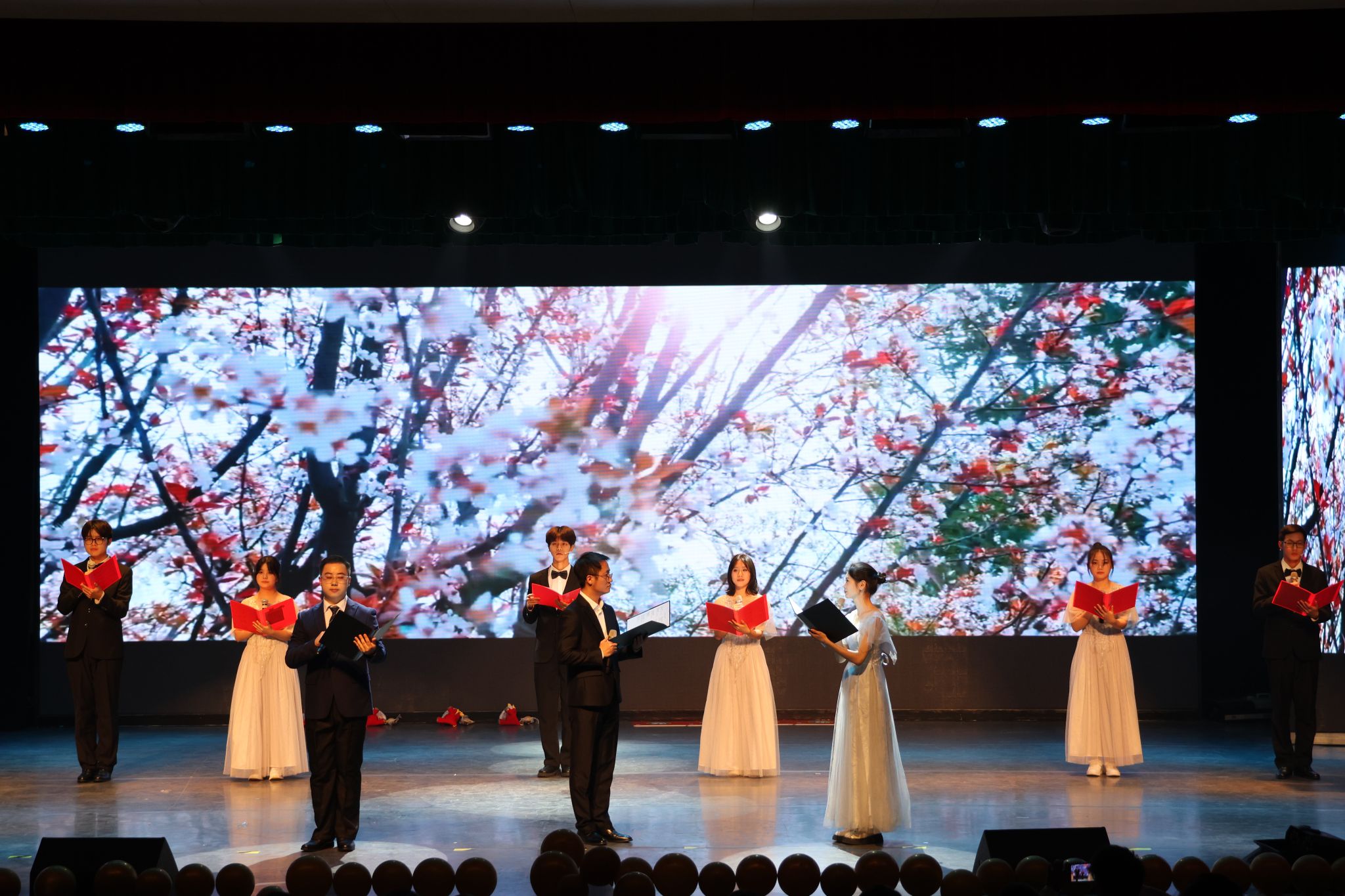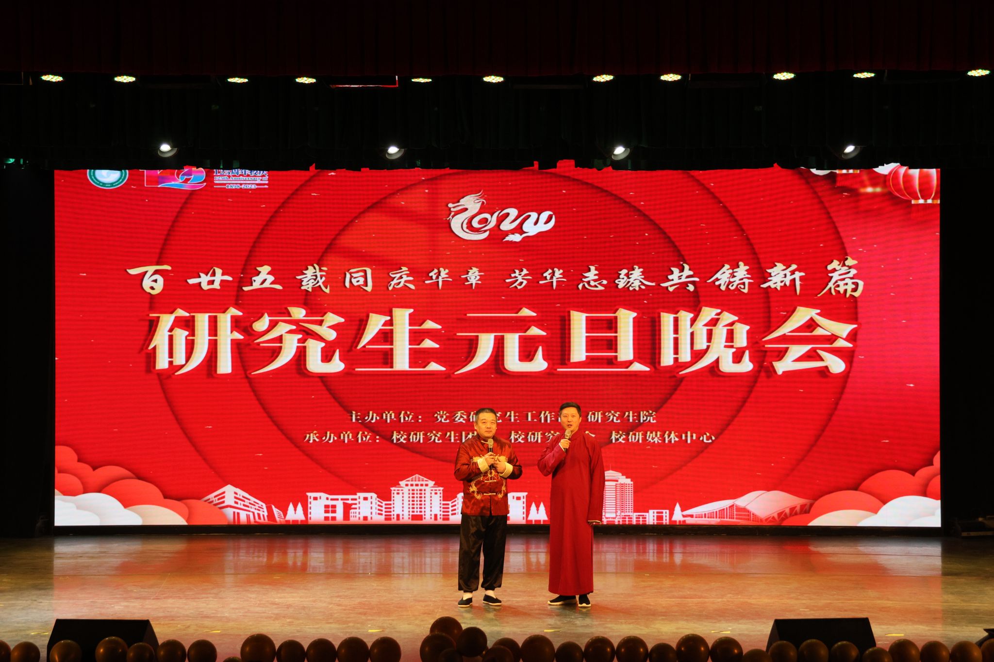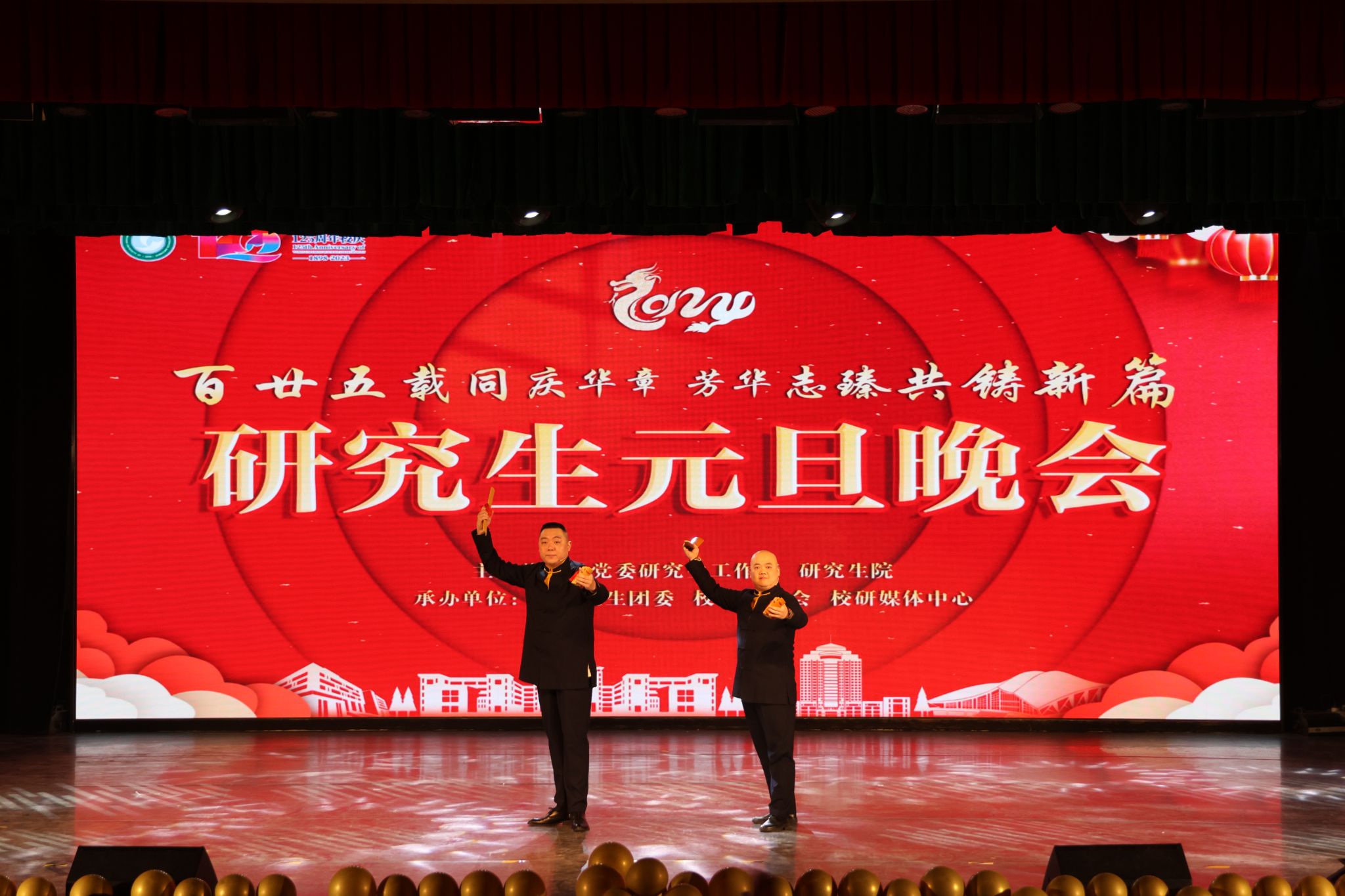 12月27日晚,2022-2023学年研究生学风建设表彰大会暨2024年研究生元旦晚会在黄家湖校区沁湖礼堂举行。党委常委、副校长马腾、党委研工部部长冒颖、研究生院院长程常桂、黄家湖综合办公室主任赵凯、党委学生工作部副部长龚晗、研究生院副院长冯涛、研究生院研招办主任秦茂林、校团委副书记向方新,学校相关职能部门负责人、各学院领导、辅导员以及研究生代表出席活动。2024年研究生元旦晚会由彭九九、刘兆天、申博源、贾喻圆、郭锐琦、戴雨薇六位同学主持。