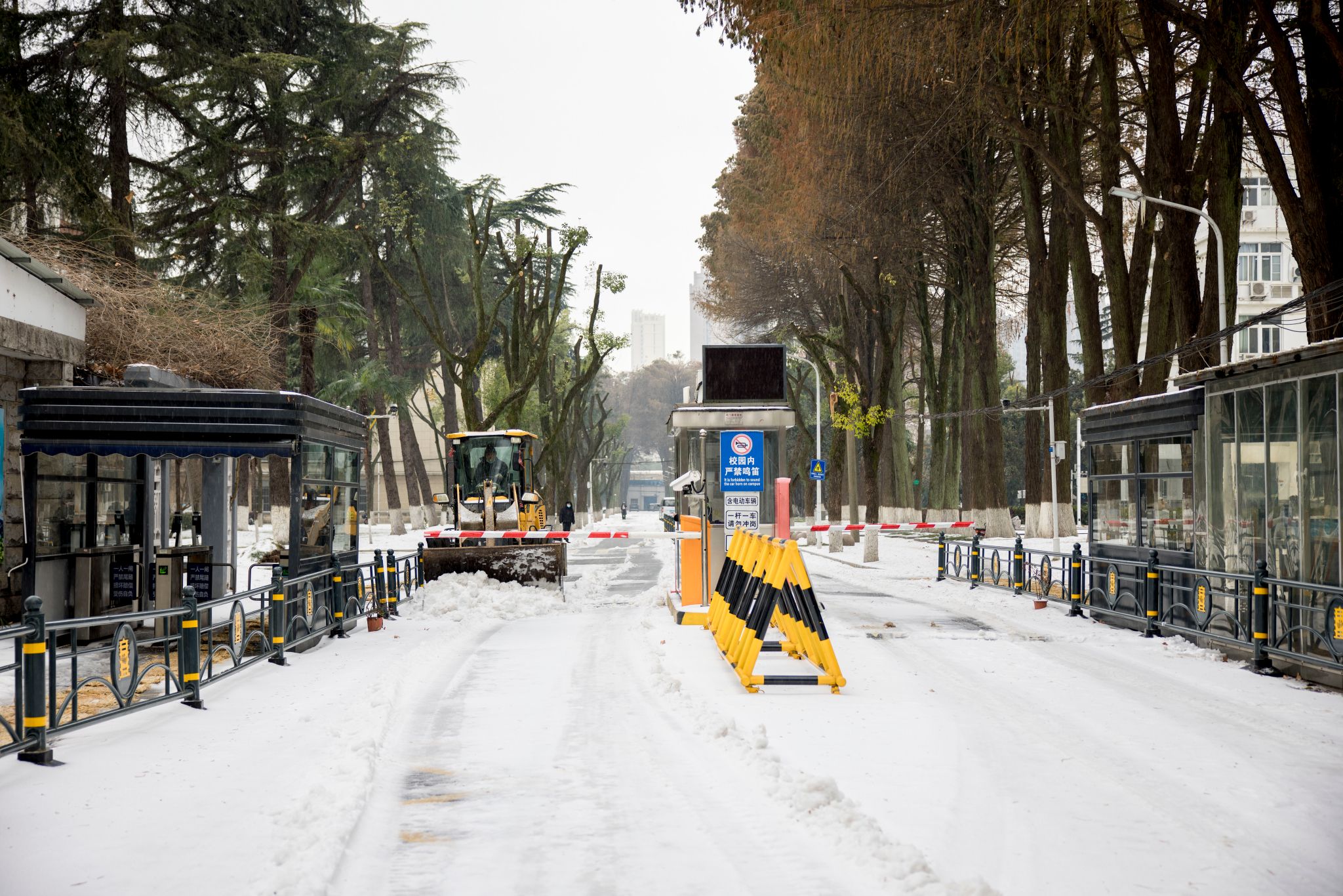 2月22日,在一夜之间,武科大银装素裹,一片白茫茫的景象。空气是寒冷的,但是武科大人的心却是热辣滚烫的。武科大的后勤人员为武科大的师生们营造安全的空间,不辞辛劳,一大早就在宿舍楼下、食堂门口以及要道门口撒盐除雪、布置防滑垫。同学们三五成群,纷纷出来看雪拍照。老师们一起去除封条,清洁玻璃。(曹易航)