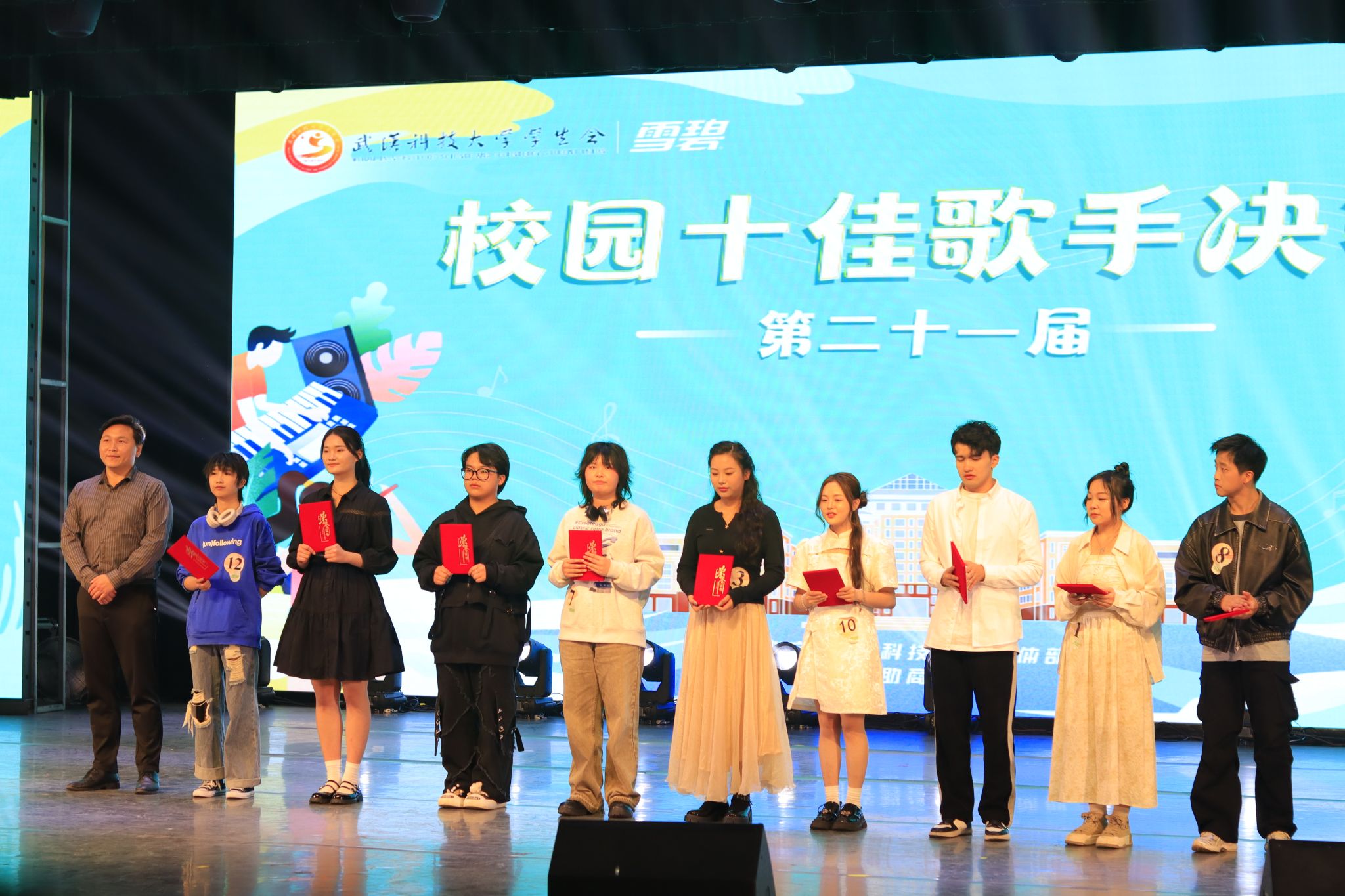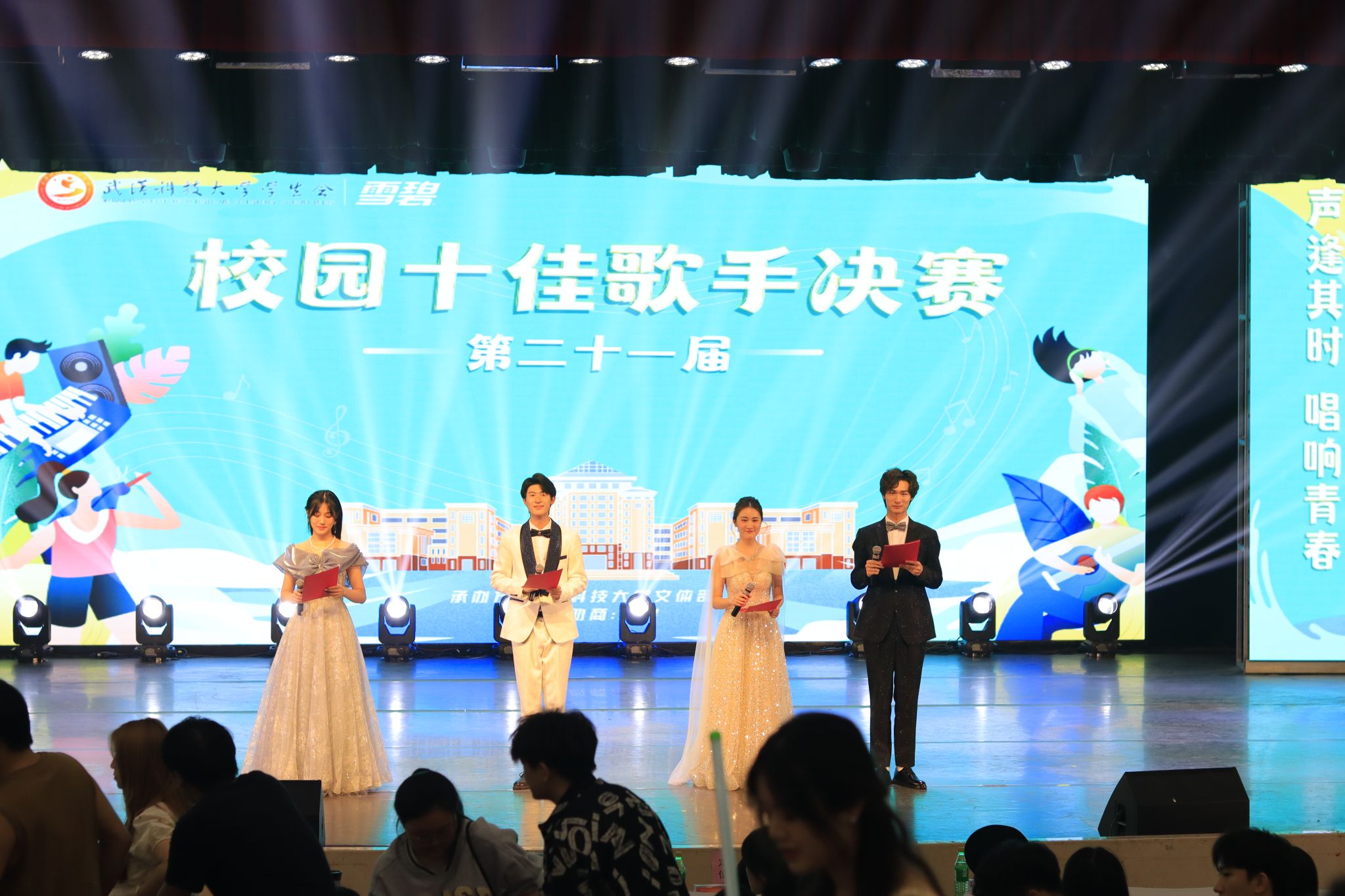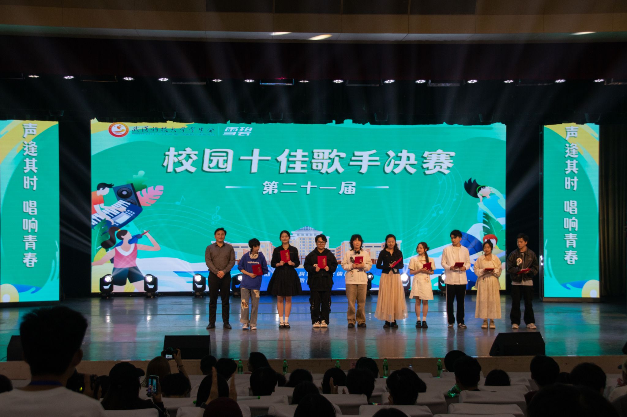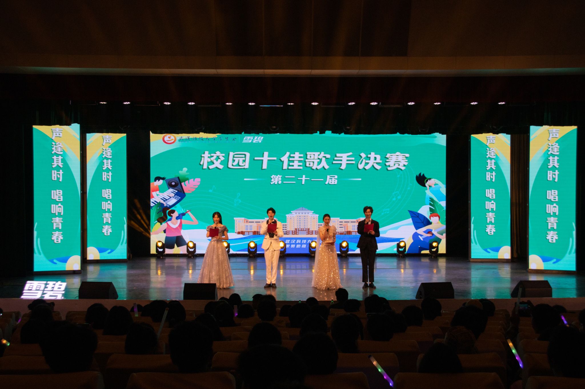 3月31日下午,Beat365中文官方网站第二十七届大学生科技文化艺术节开幕式暨十佳歌手大赛在沁湖礼堂举行。首先举行大学生科技文化艺术节开幕式。开幕式分为四项议程:奏唱中华人民共和国国歌、校学生会执行主席潘美琳发言、校团委副书记向方新宣读、校团委书记王媛媛讲话。开幕式结束后,第二十一届校园“十佳歌手”大赛正式开始。比赛分为三轮,第一轮为合唱赛,第二轮为擂台赛,第三轮为巅峰排位赛。十二位选手都各展风采,角逐胜负。决赛的冠亚季军分别为尹弼、肖韦、万瑞涵。(邹思懿 马茜云)