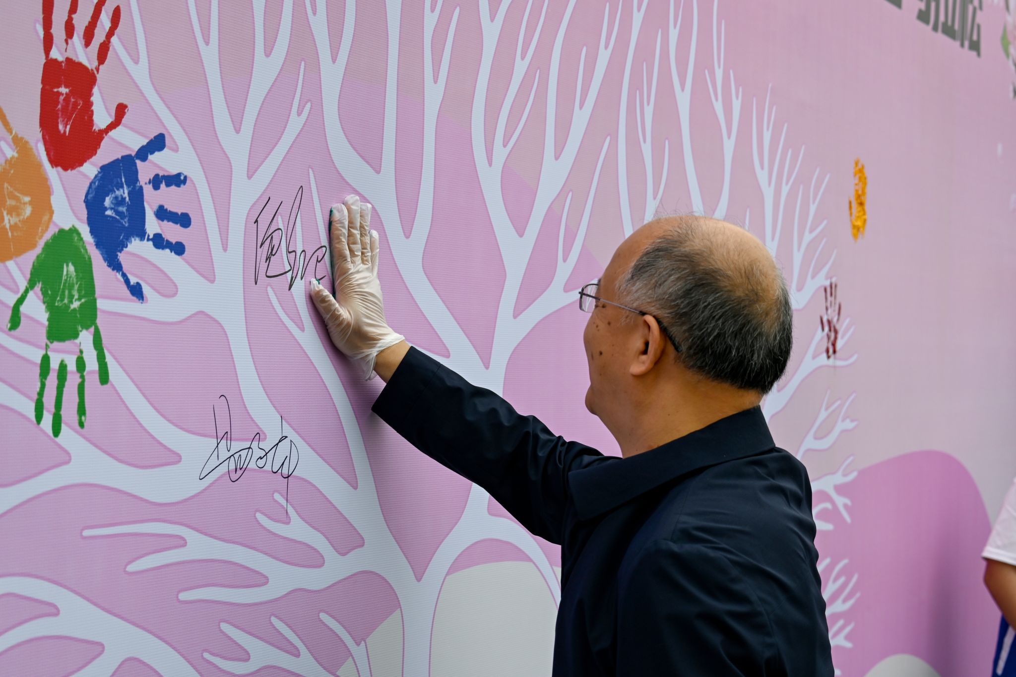 参与马拉松的同学签名墙上签名 杨佳伟摄