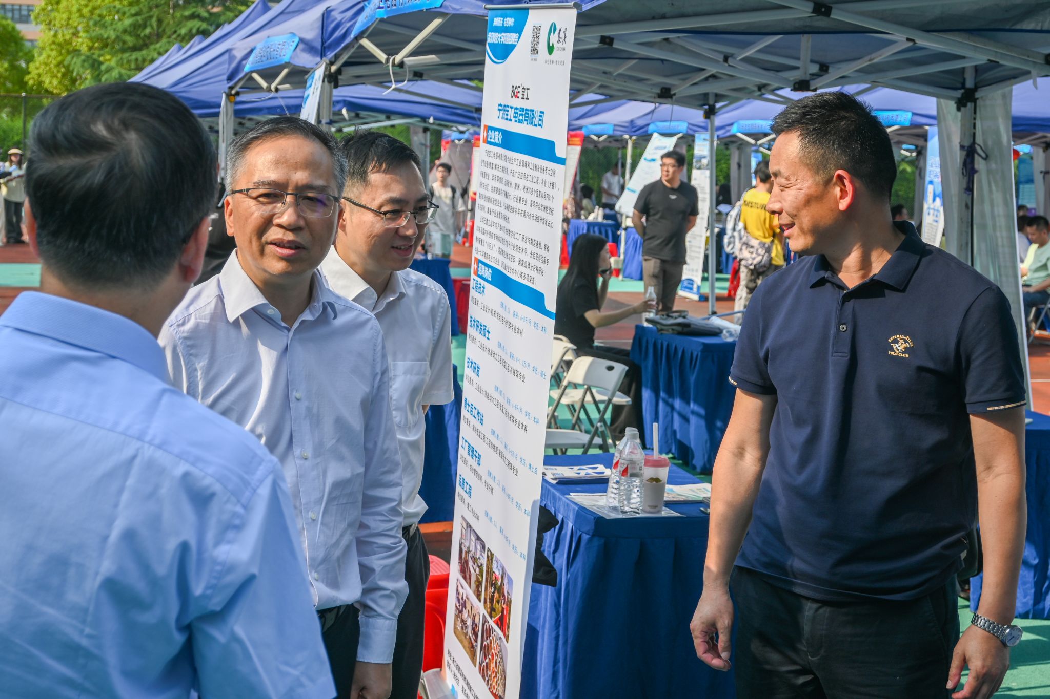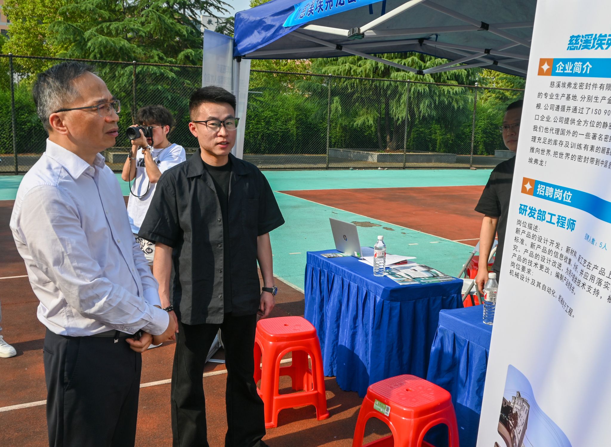 5月15日,慈溪市春季全国高校巡回招聘宣讲会在Beat365中文官方网站黄家湖校区顺利召开,并在南苑操场组织招聘会,学生积极参加,现场火爆。会议结束后,慈溪市委常委、组织部长施宇峰一行到Beat365官网来访。校园招聘宣讲会上,施宇峰介绍了慈溪市人才政策,当地企业代表进行了企业宣讲。随后,施宇峰一行参观了校史馆、廉园、大学生心理健康教育中心、艺术与科学研究中心高温颜色釉彩画展厅、汽车学院实验室和招聘会现场。(黄宏杰 肖善明)