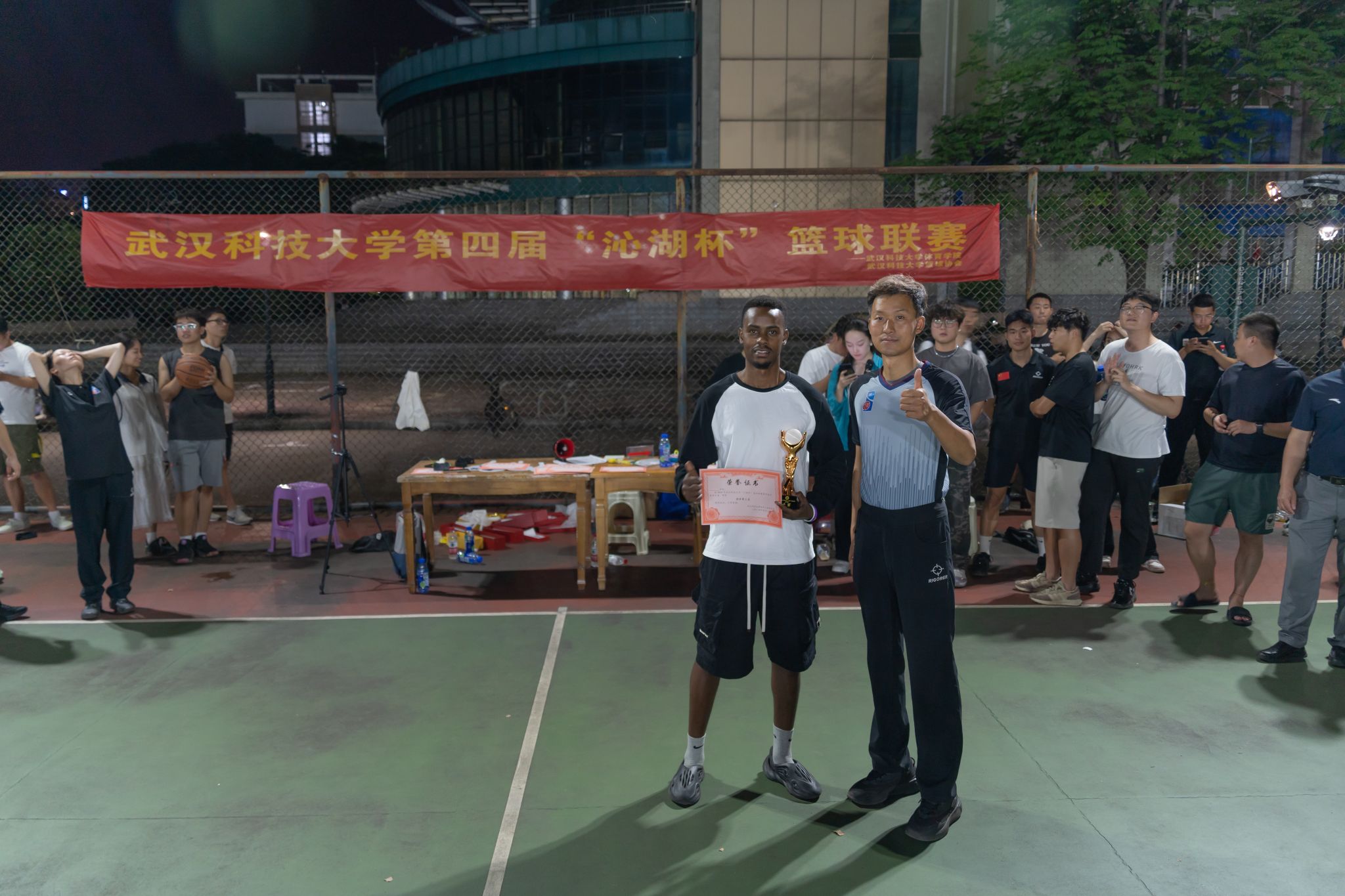 5月28日晚,在Beat365官网北园篮球场第四届“沁湖杯”篮球联赛正式落幕。本场比赛为计算机学院男篮对战研究生男篮。最终计算机学院以15分的优势赢下了此次沁湖杯的冠军。