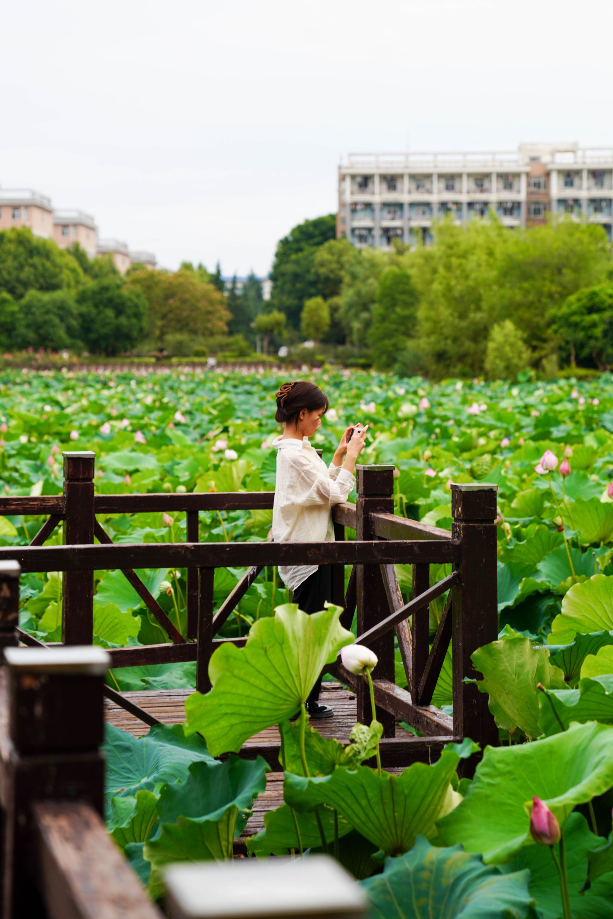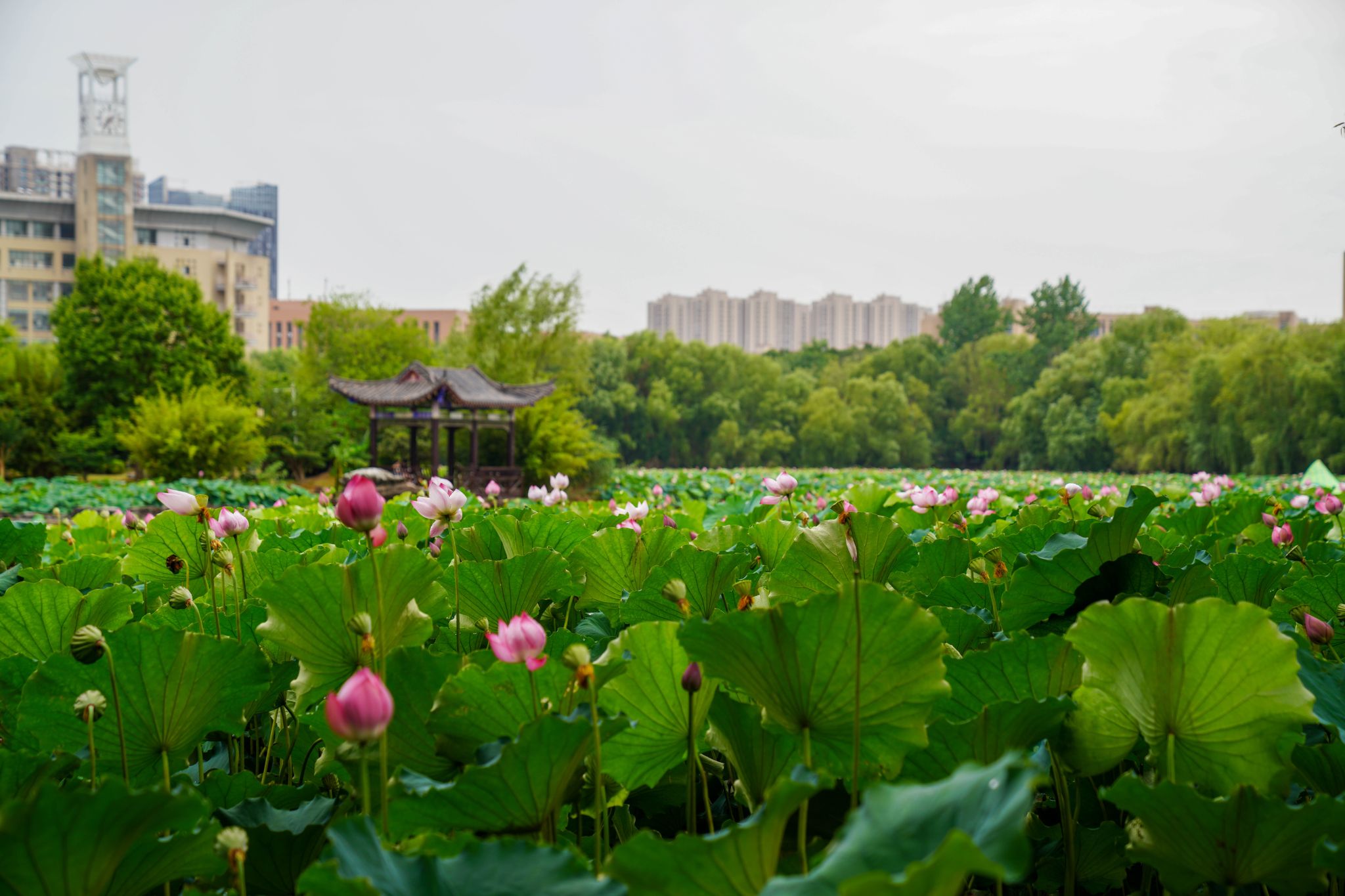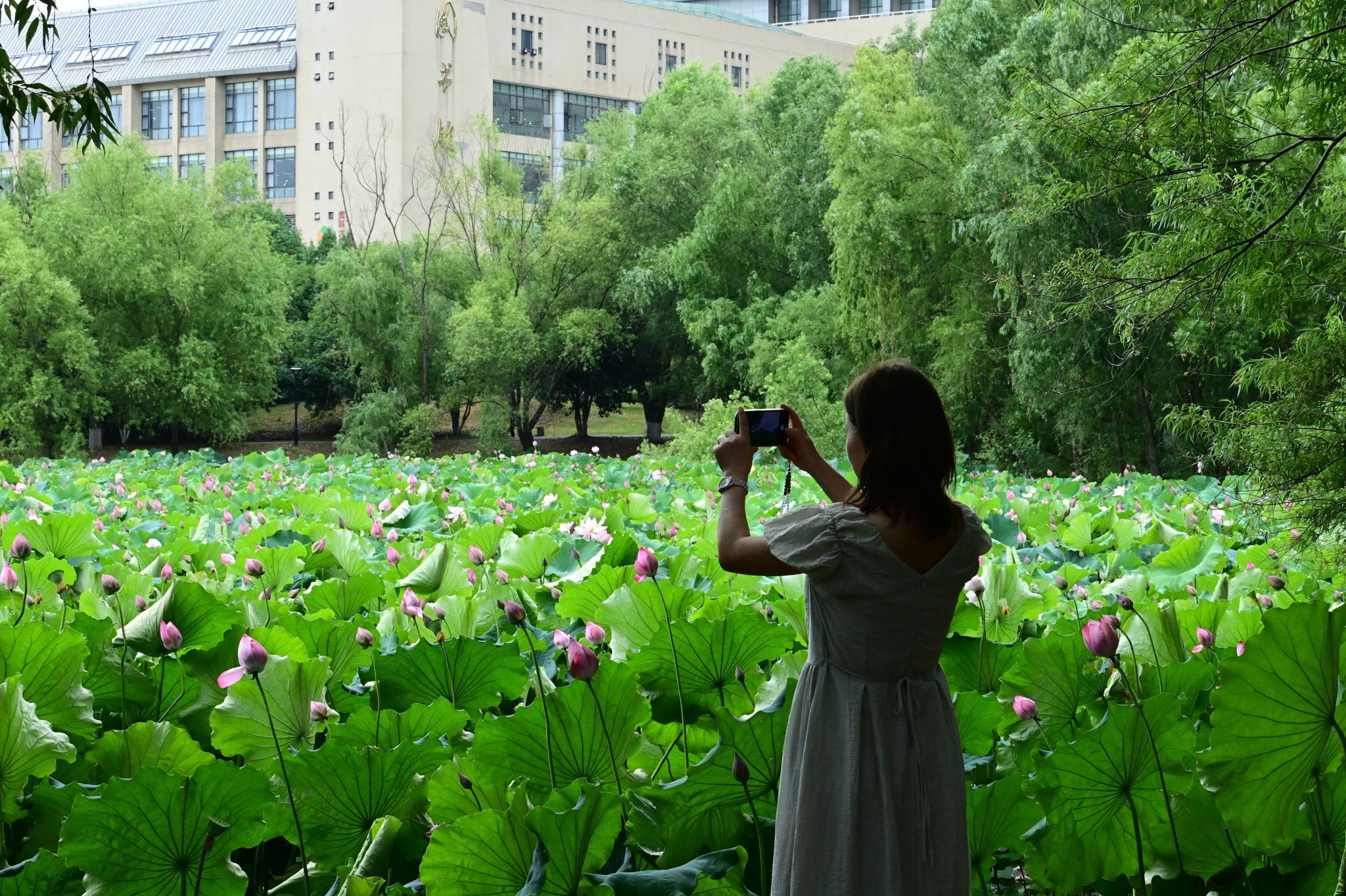 夏至时节,一场细雨过后,荷塘仿佛被唤醒了一般,生机勃勃。荷叶宽大而翠绿,上面还残留着雨水的痕迹,仿佛刚刚被雨水亲吻过一般。花瓣上挂着晶莹的水珠,每一朵荷花宛如一个害羞的少女,脸颊上带着红晕,娇艳欲滴。许多师生纷纷去往沁湖观赏拍照。(马一超)