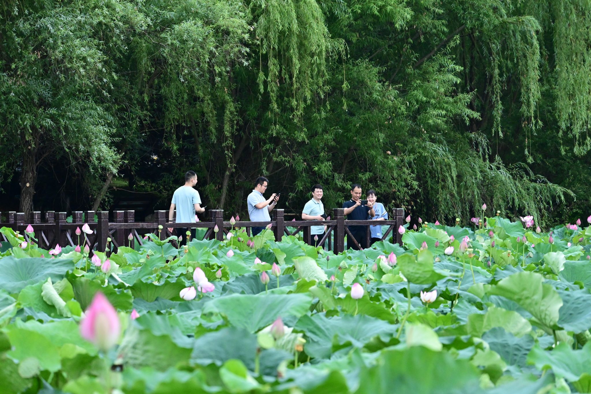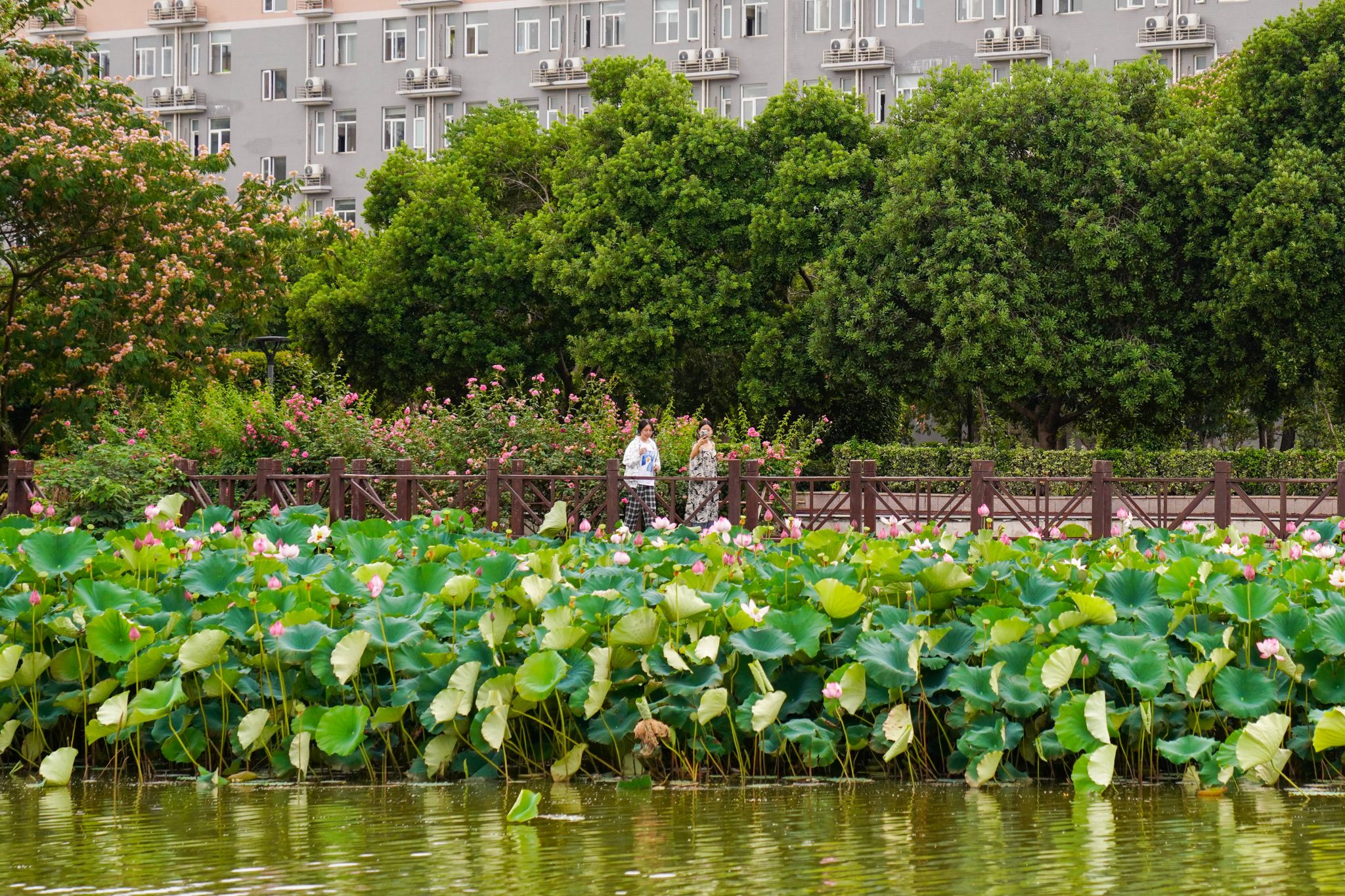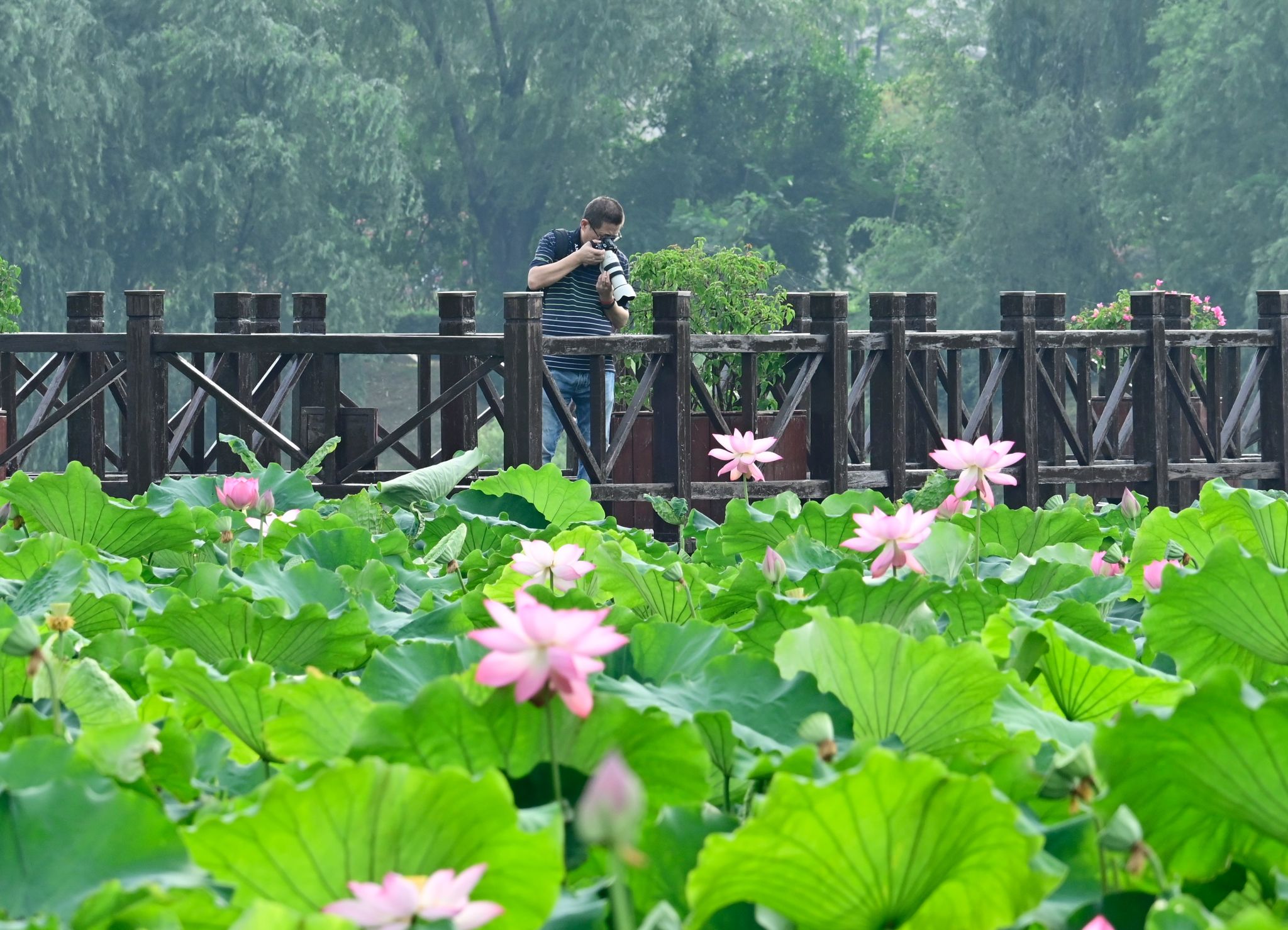 夏至时节,一场细雨过后,荷塘仿佛被唤醒了一般,生机勃勃。荷叶宽大而翠绿,上面还残留着雨水的痕迹,仿佛刚刚被雨水亲吻过一般。花瓣上挂着晶莹的水珠,每一朵荷花宛如一个害羞的少女,脸颊上带着红晕,娇艳欲滴。许多师生纷纷去往沁湖观赏拍照。(马一超)