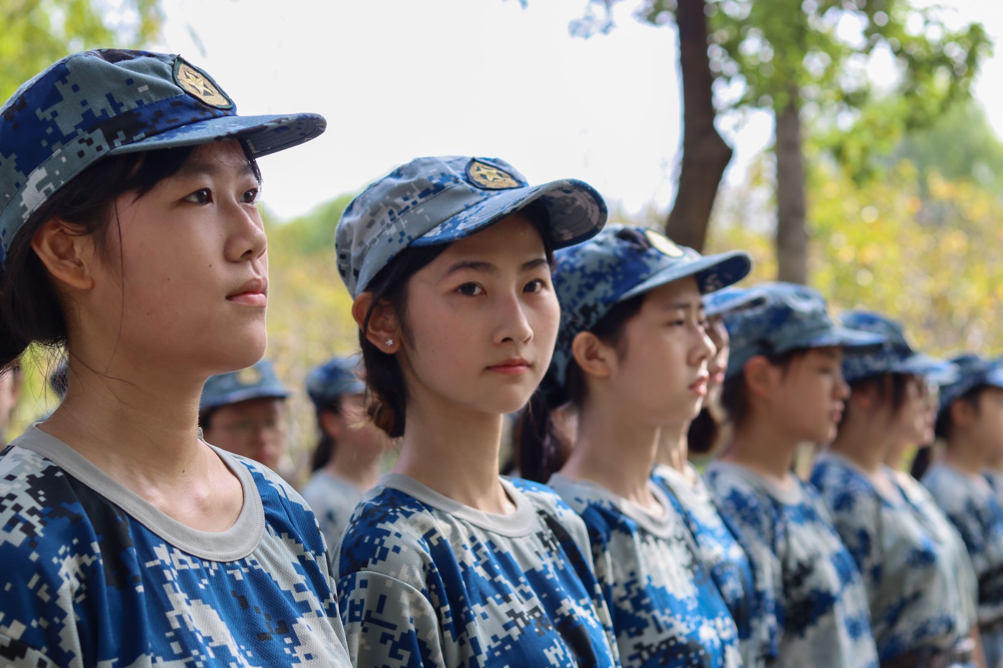 军训学生目视前方 杨欣怡摄