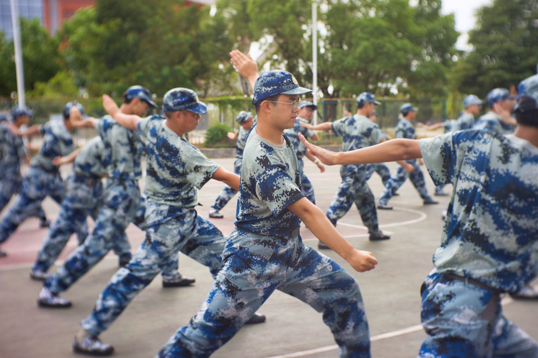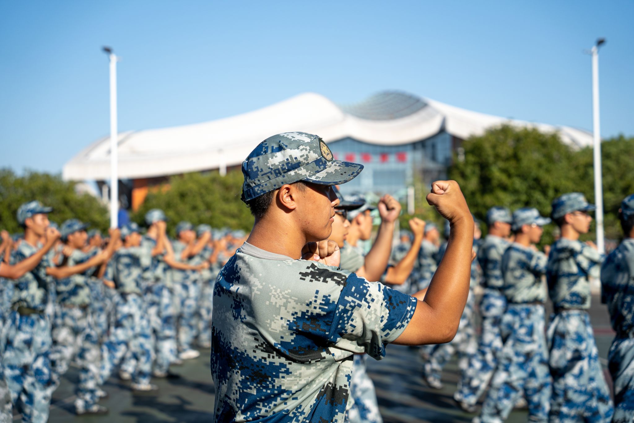 军训汇演排练特写 孙奕哲摄