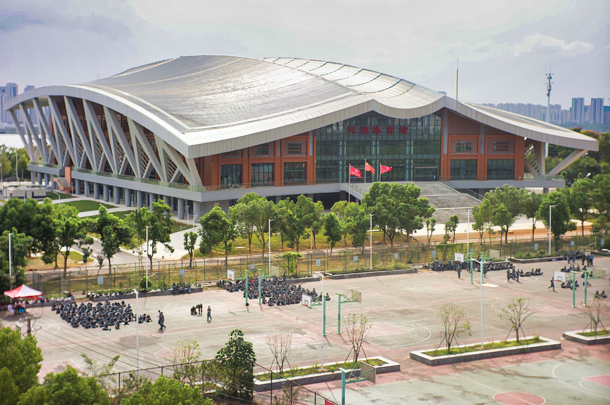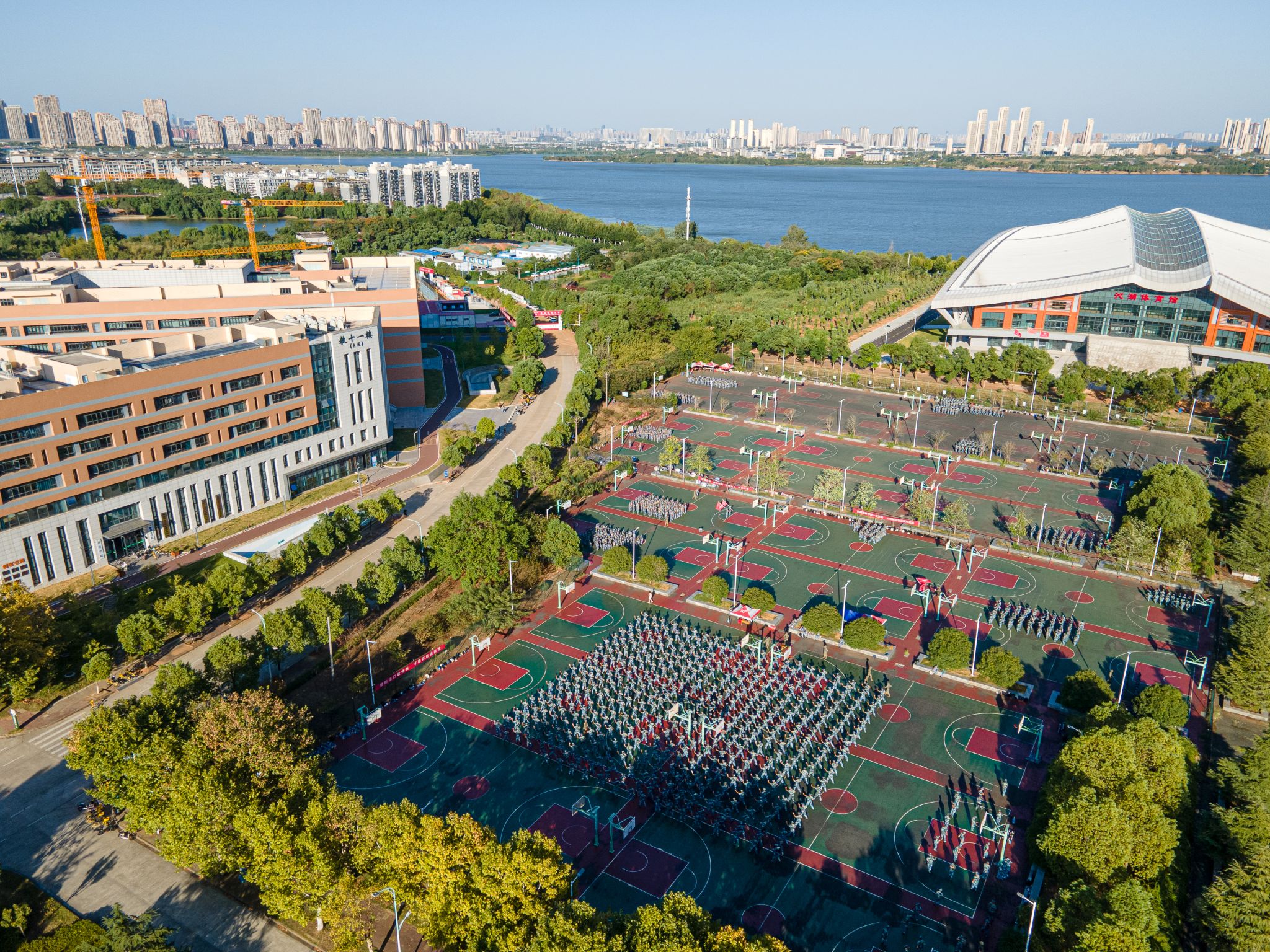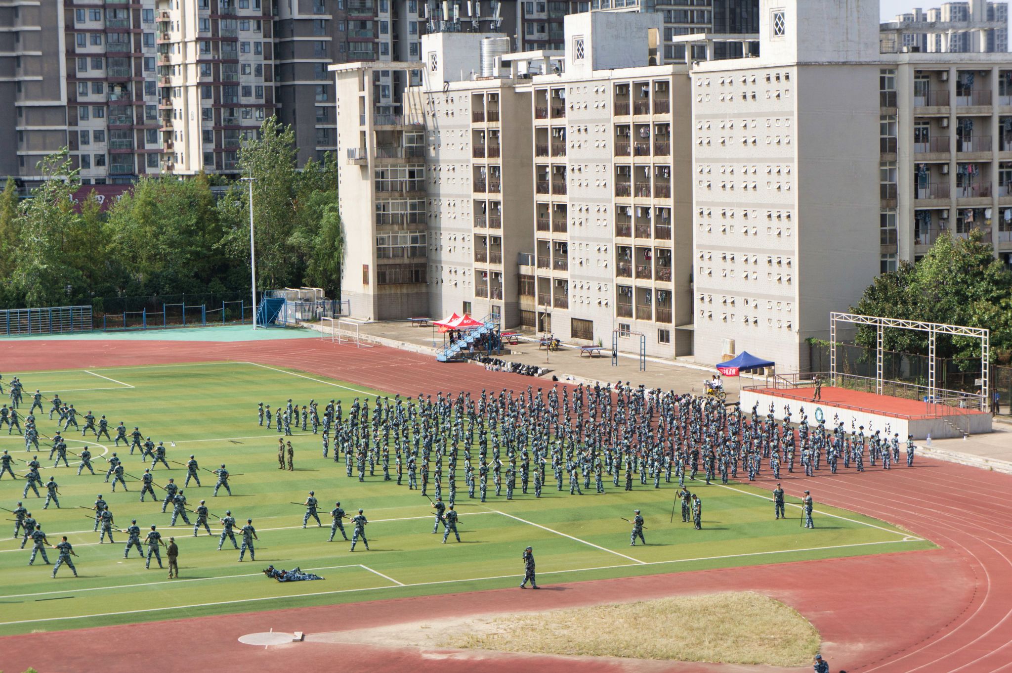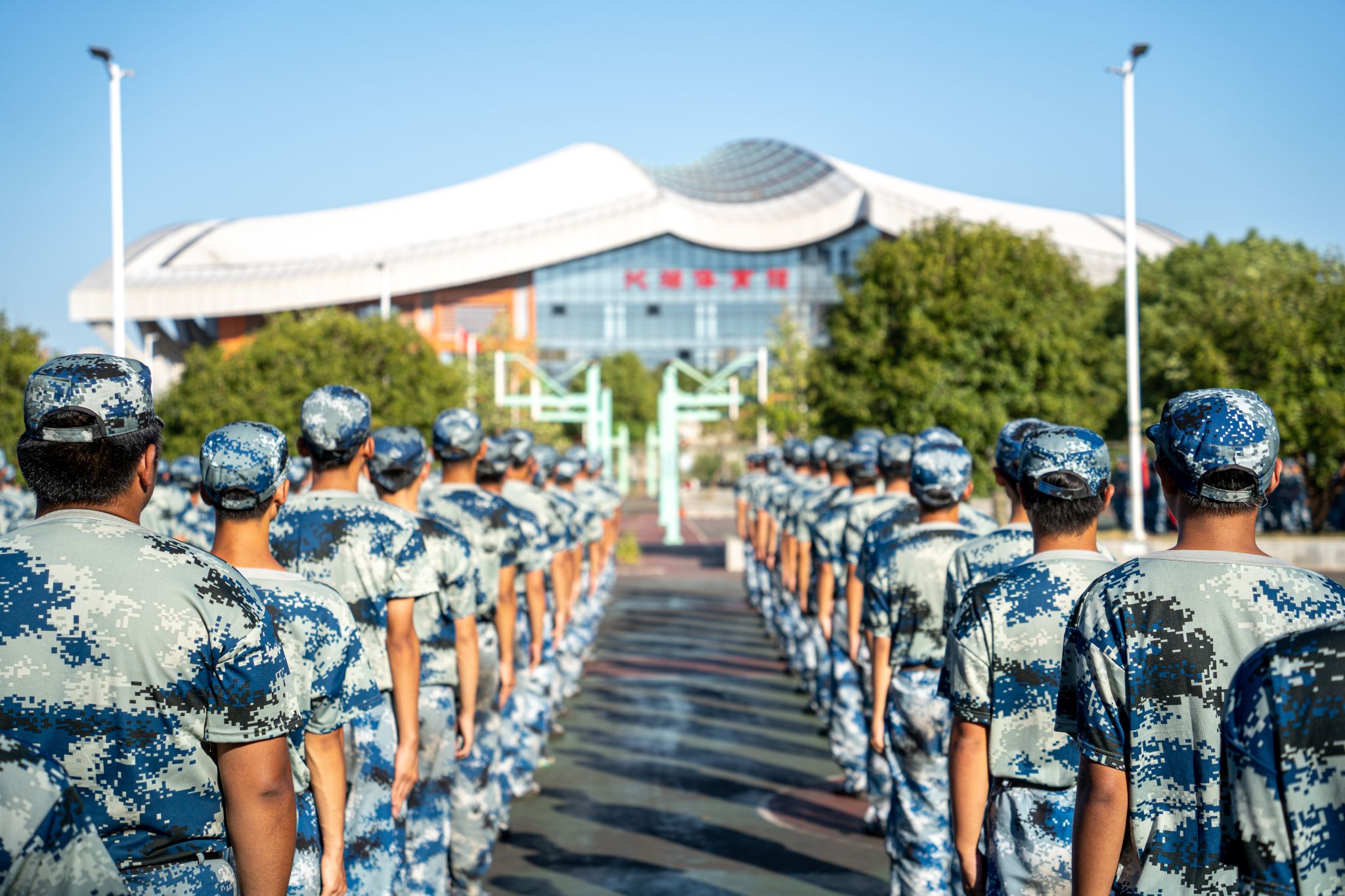 沁湖体育馆下军训 俯视 王翔宇摄