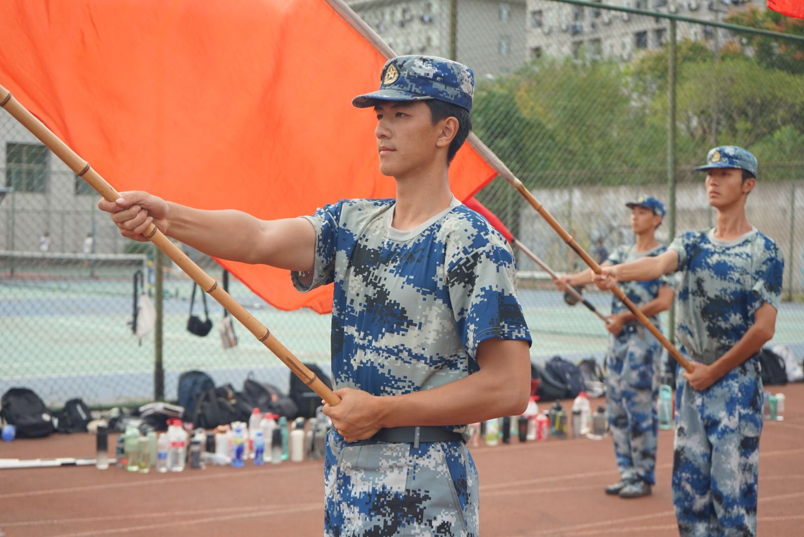 持棍方阵训练中中景 孙奕哲摄