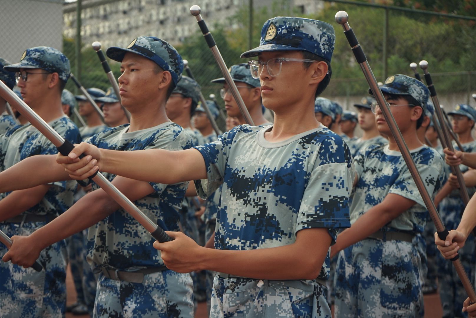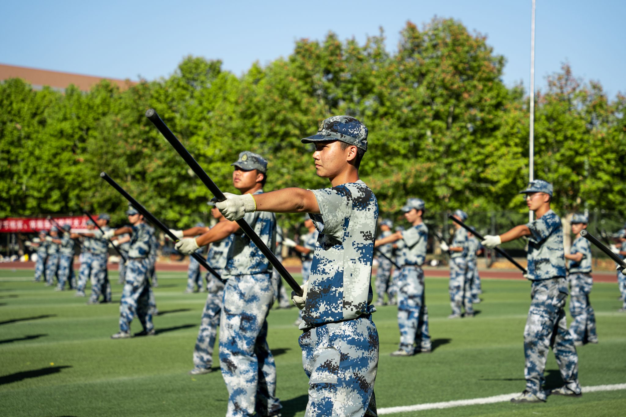 持棍方阵训练特写 孙奕哲摄