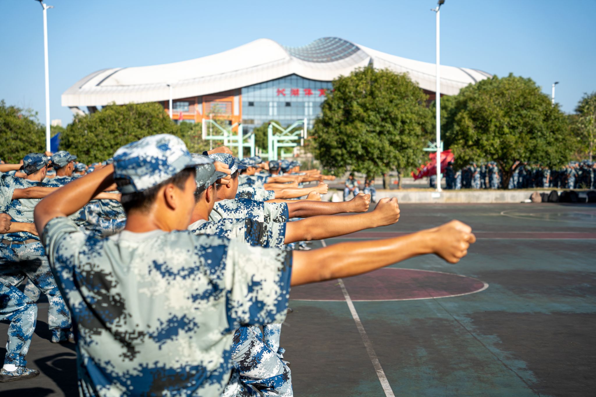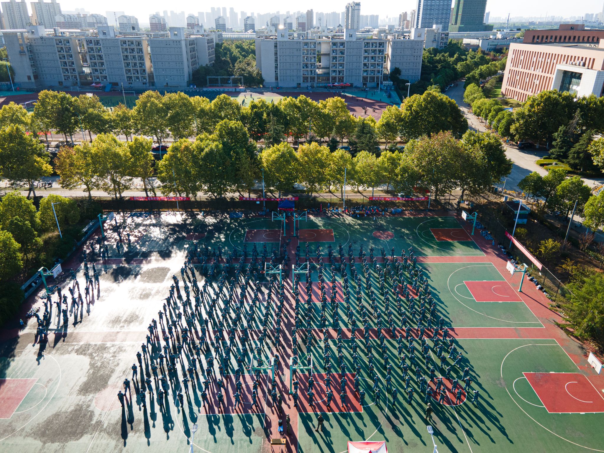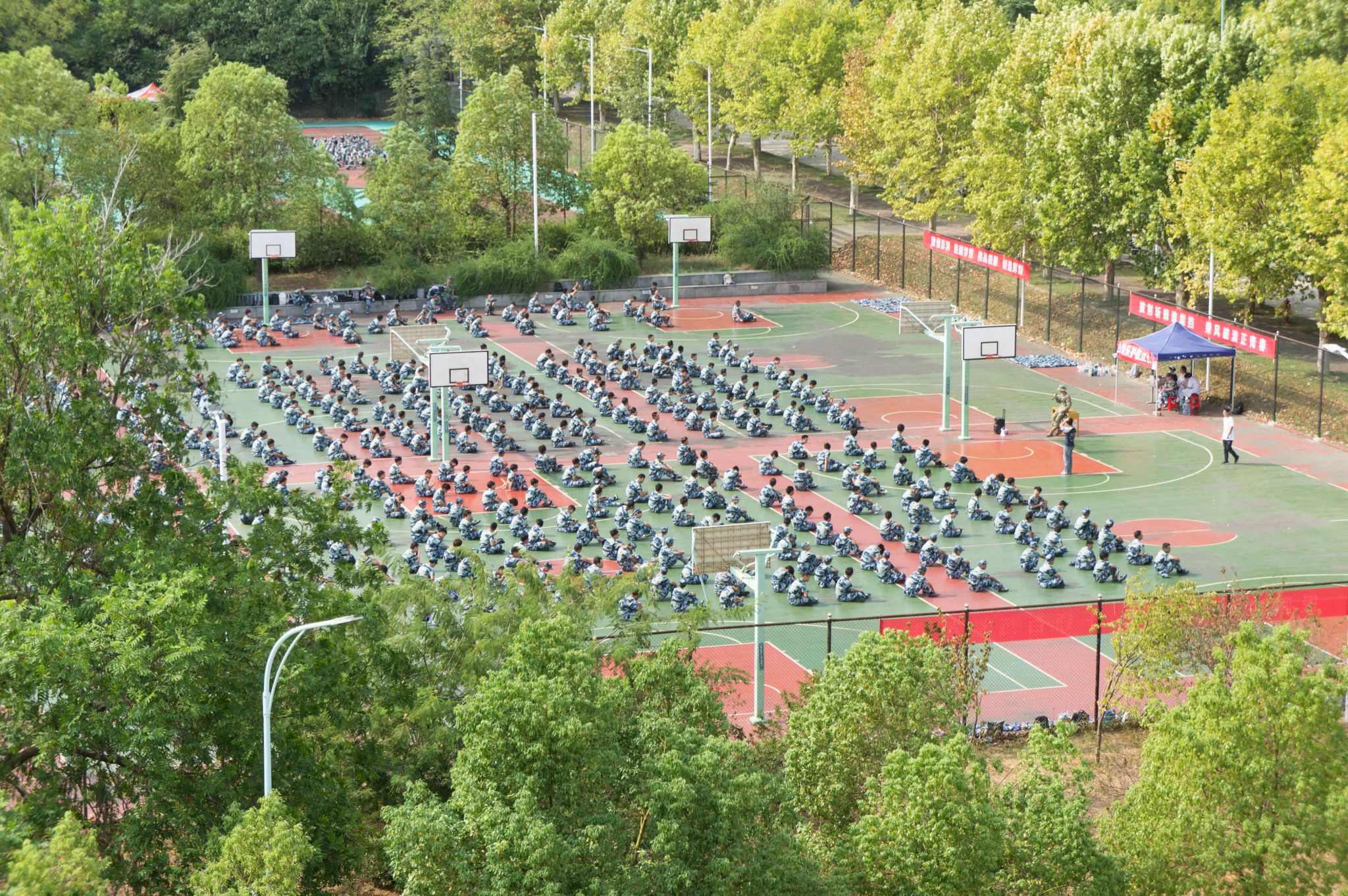 南园篮球场军训远景 孙奕哲摄