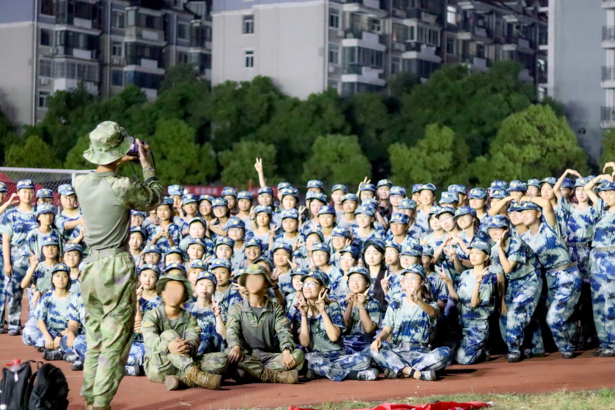 学生与教官合影 杨欣怡摄
