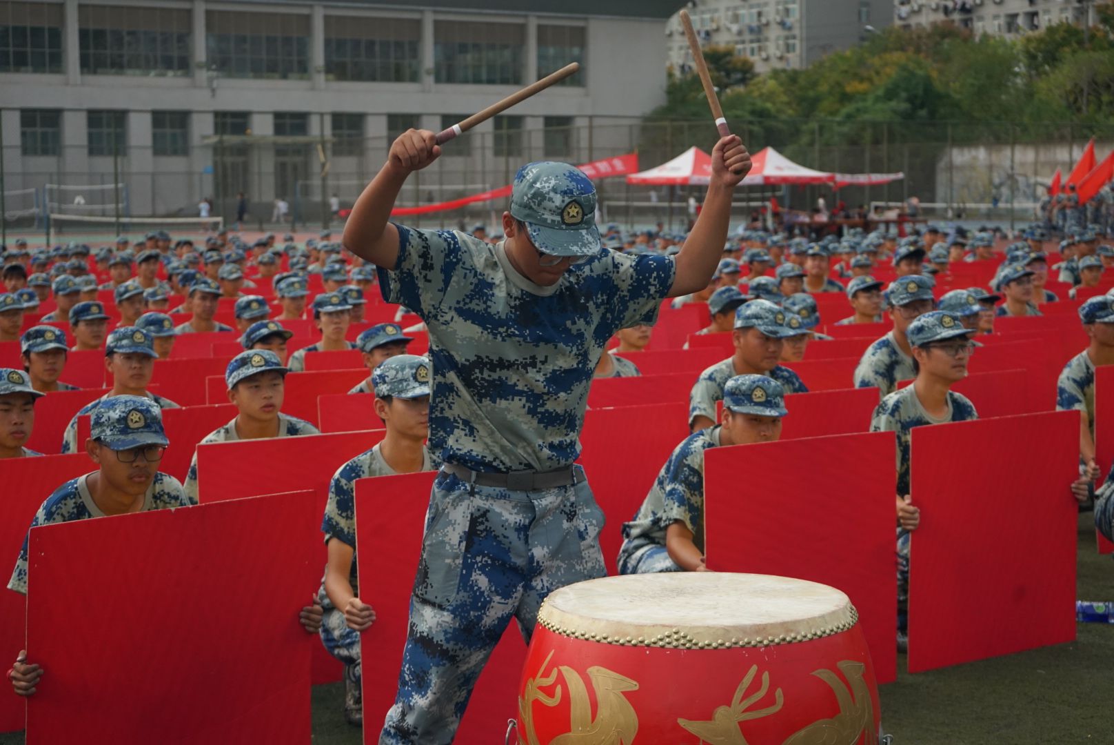 军训汇演排练方阵中景 孙奕哲摄