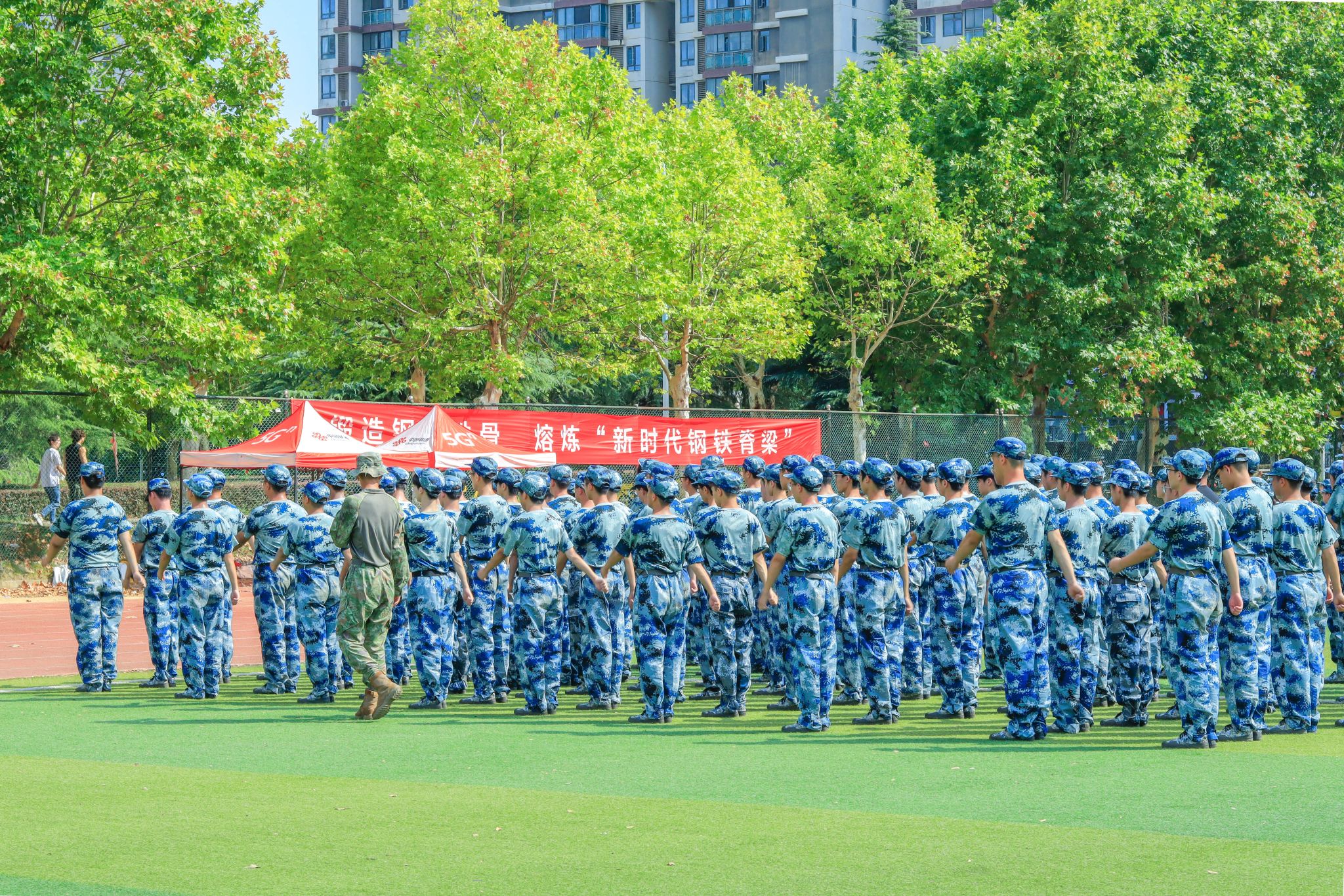 教官背影指导队列动作 王翔宇摄