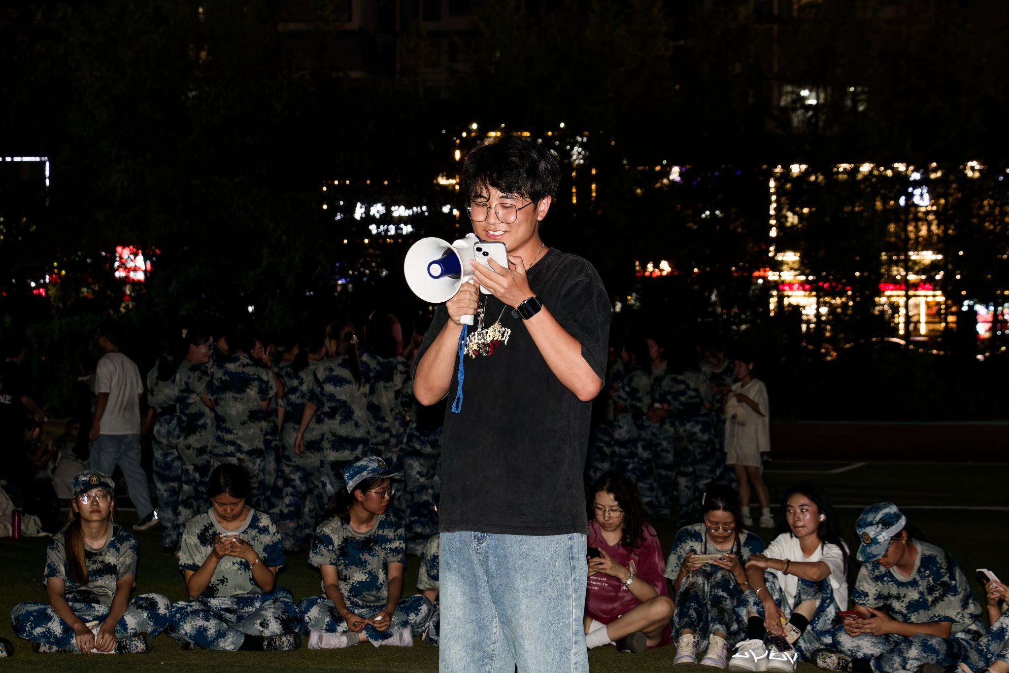 资环学院、生科院、马院新生晚训侧视角 孙正恒摄