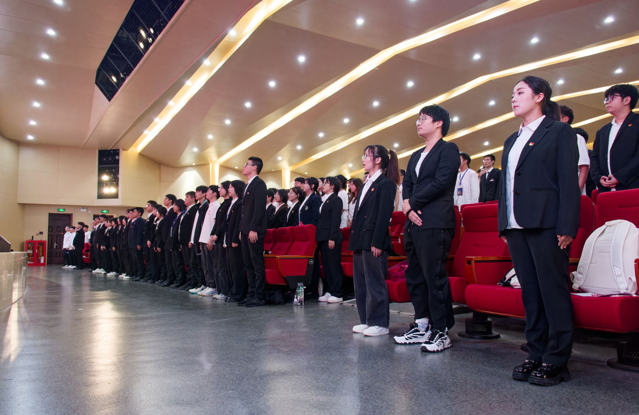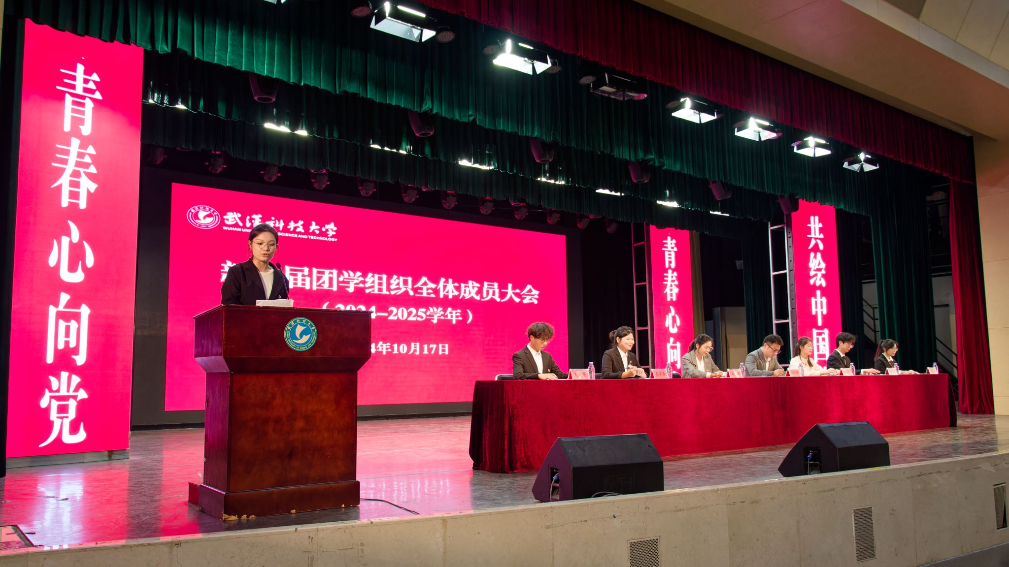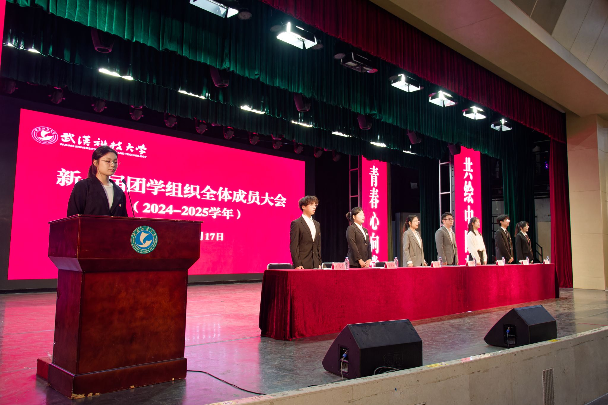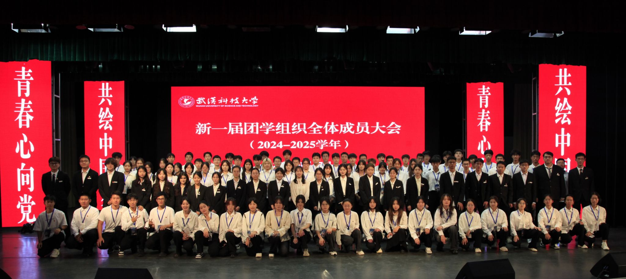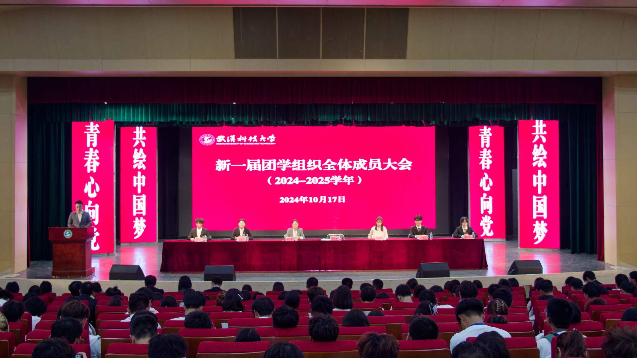 10月17日中午,Beat365官网于沁湖礼堂举行新一届团学组织全体成员大会。校团委副书记向方新、团委副书记(学生)刘丹、团委组织部部长李庆昉、团委文化活动部部长陈娴敏,校学生会、社团管理部等学生组织全体成员。会议流程包含奏唱国歌、团委副书记刘丹介绍团学组织招新情况等八项,最后成员合影留念。(吴颖 胡晨阳)